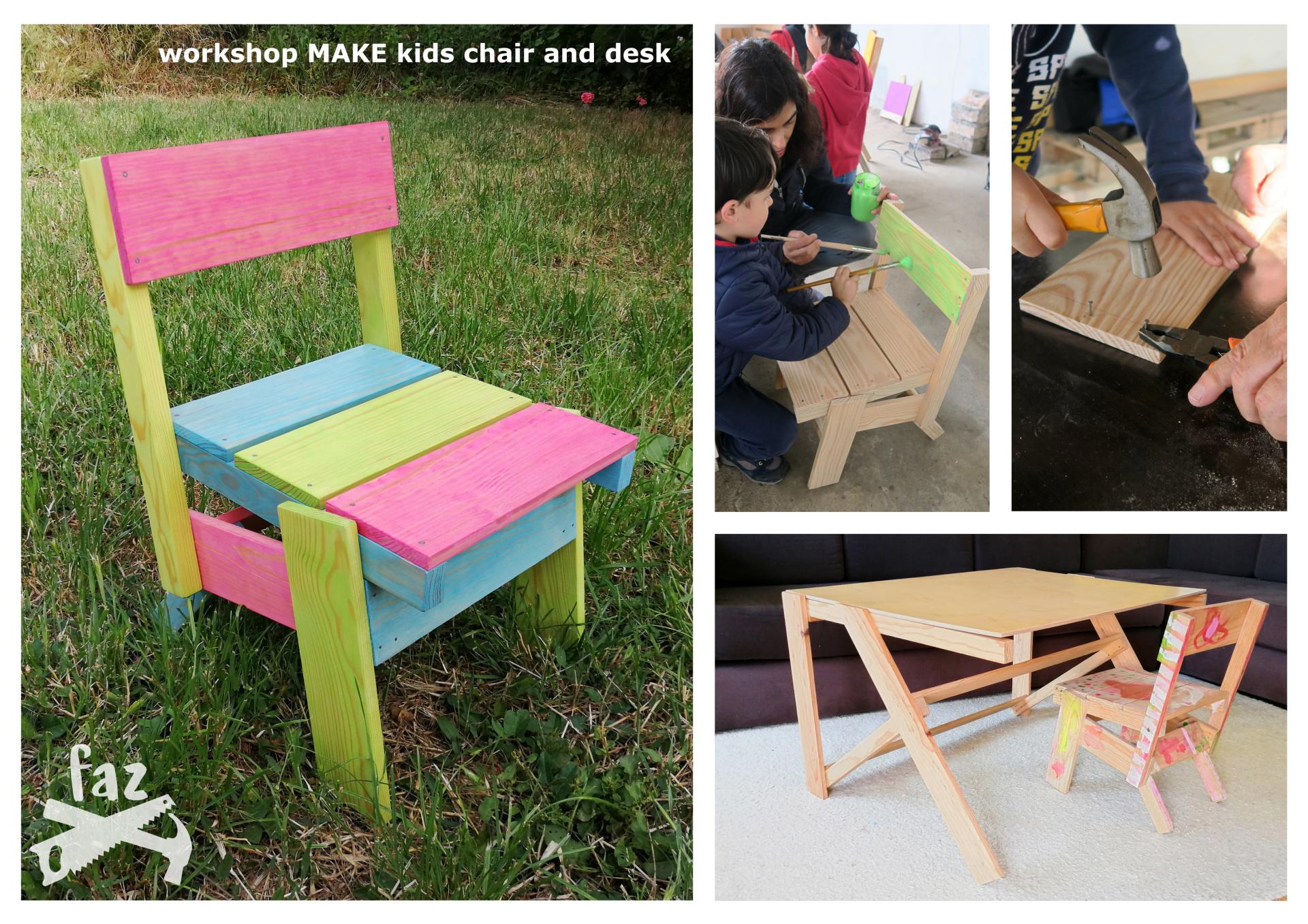 FAZ workshops are always tailored to the location, group of beneficiaries and context. The workshops that take place in Angra do Heroísmo use the local wood: cryptomeria in standard marketed dimensions. The design of the armchair, for example, has changed to adapt to the particular characteristics of this wood. In Leiria, local pine wood is used. Even within each workshop, the pieces often have to be according to the percentile of each participant. This is very evident in the workshop MAKE a children's chair for families (image 4), children between 6 and 10 years old have up to 40 cm difference in height. For the MAKE a children desk workshop (image 4) I even designed a model that "grows", having two heights.