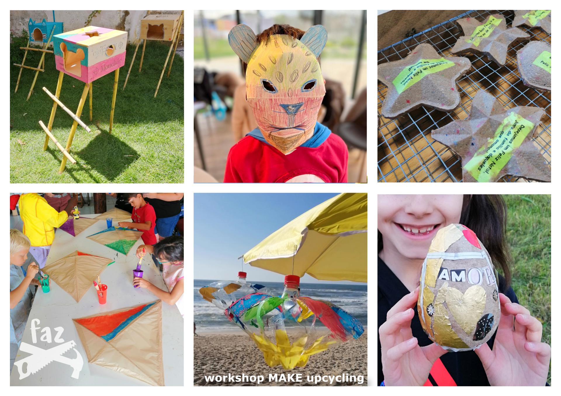 Other specific contexts determine the theme, such as at the Beach Library in Pedrogão, Leiria, where children built paper kites and in another workshop, they built windmills from PET bottles (image 6). If the event is open to the public, as in the NEB Festival or Maker Faire Lisbon, the design of the built pieces reflects the fact that the moments of concentration of the participants are very short.