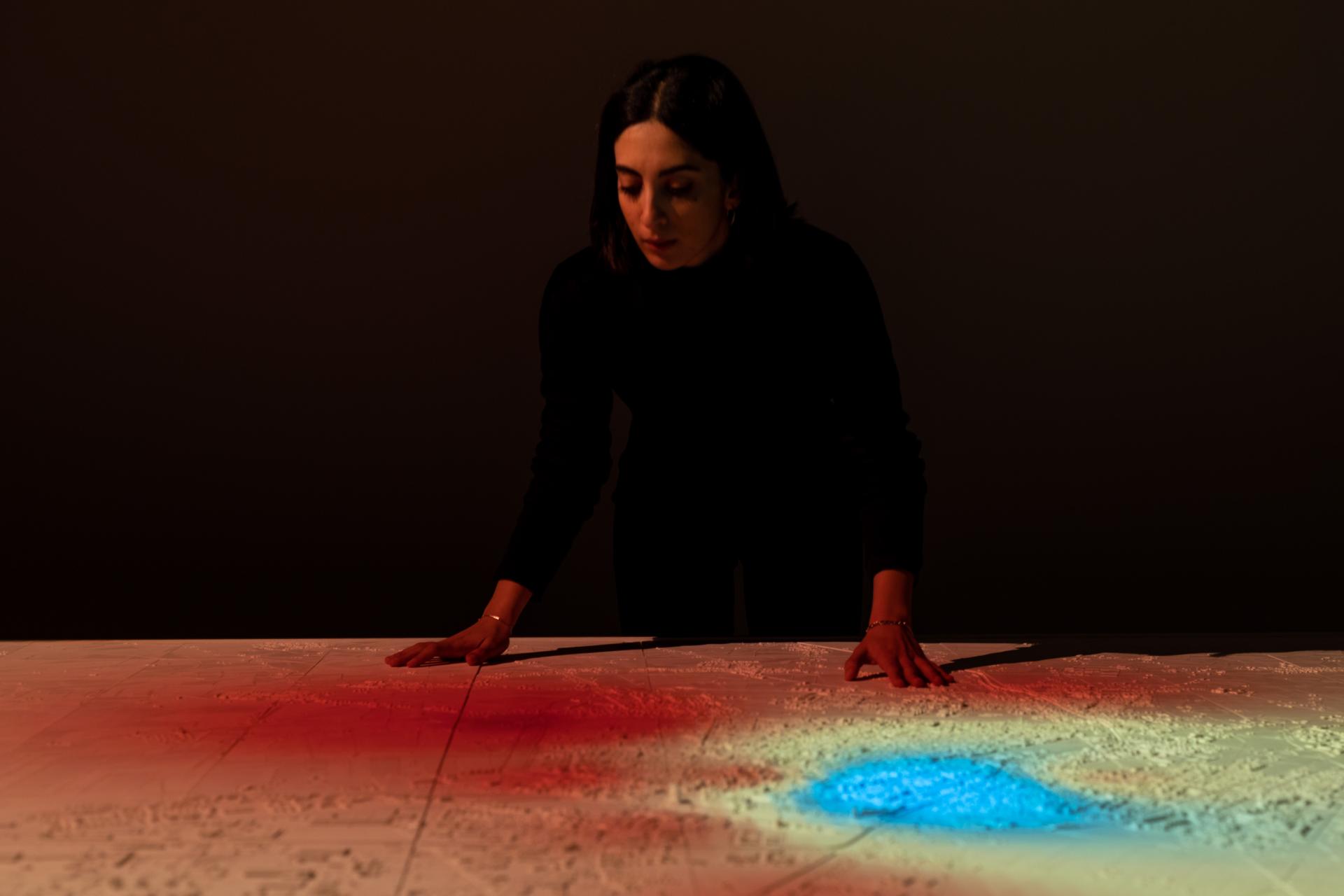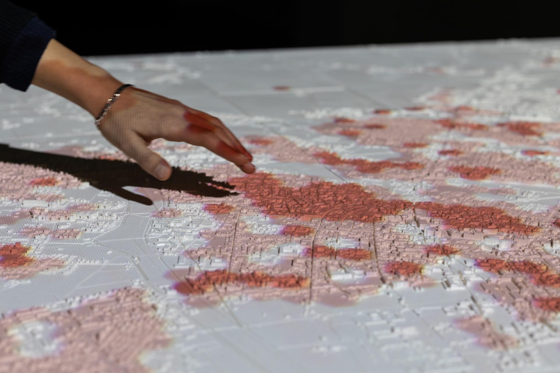The experience of the 3D-printed maquette is augmented through interactive projections providing air quality, urban temperatures, mobility, and land use data. (https://www.youtube.com/watch?v=YLHBbRbpwvc)