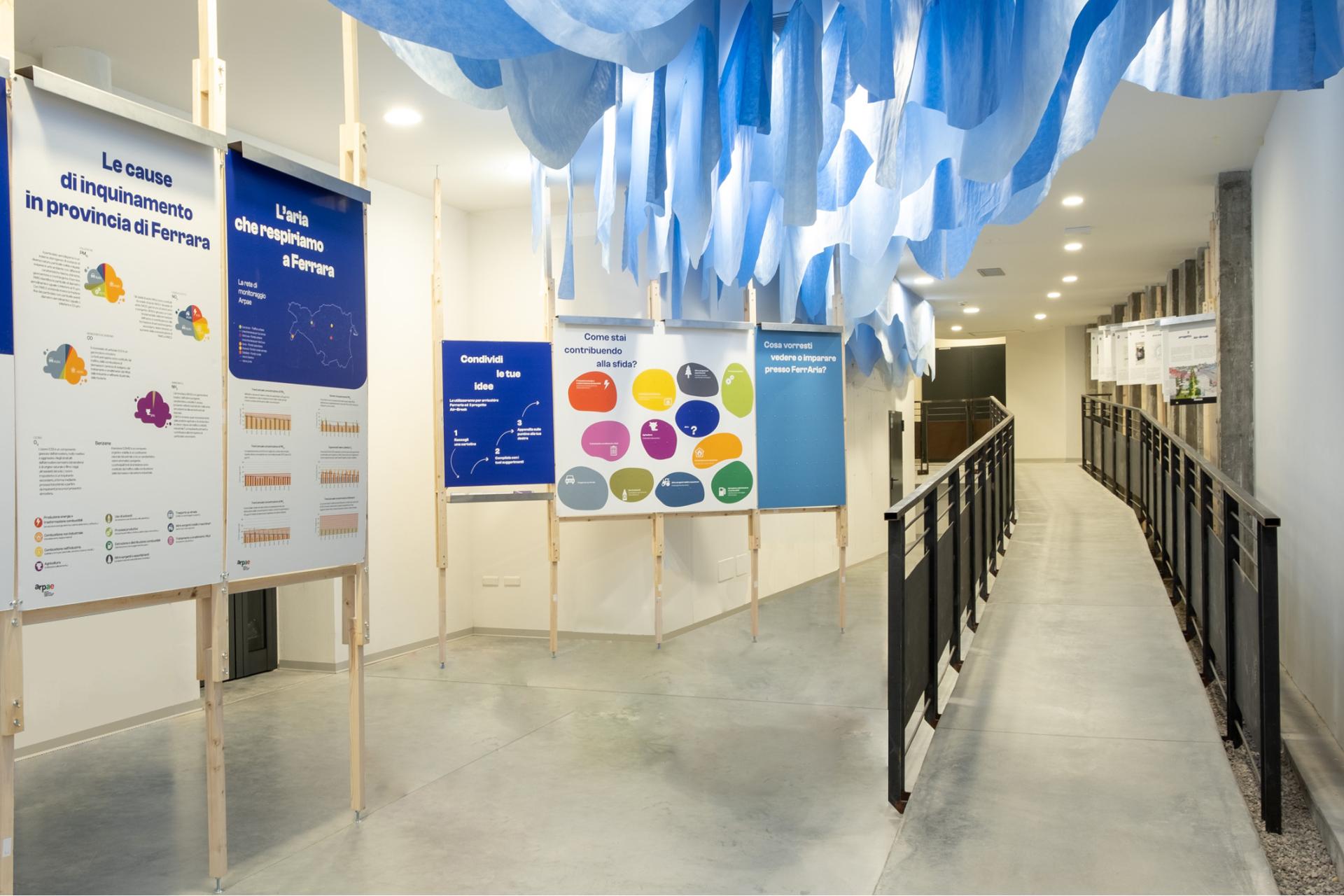 The goal of the exhibition is to provide an interactive experience, displaying air-quality data and knowledge through multimedia supports (both physical and digital).