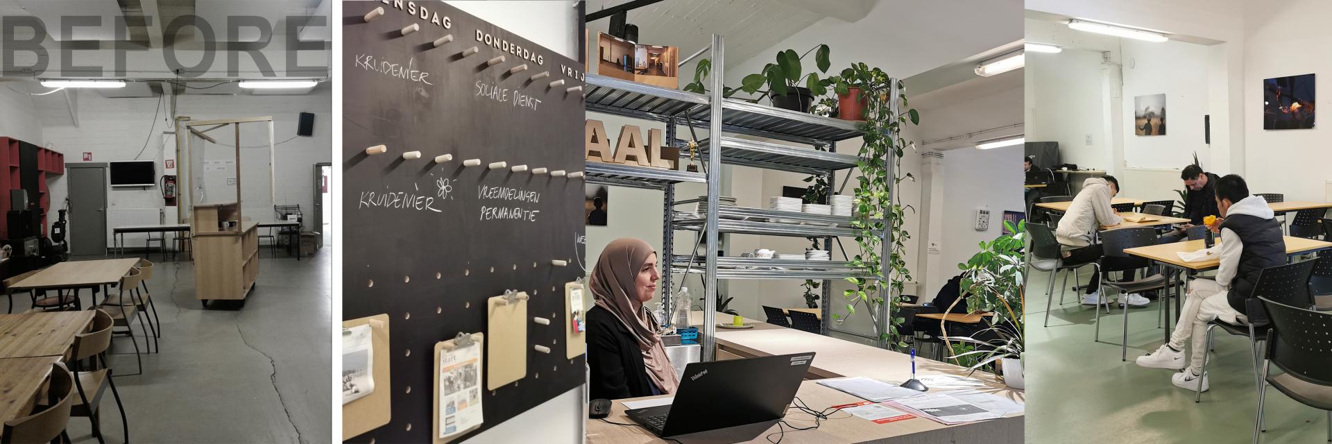 Students were also involved in the practical implementation. Their active participation on the shop floor, together with the users, enriched the learning process and contributed to a successful delivery. The designers played an active role through physical contributions such as painting, placing furniture and making accessories. This hands-on involvement helped keep costs down and made the project possible.