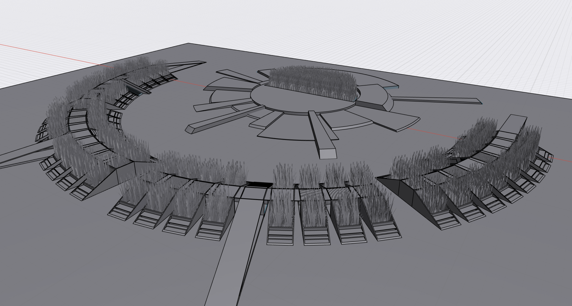We have designed architectural and design modules that seek to integrate with both human-made and natural environments. Straight lines merging into curved lines inspired by the spontaneity of plants. We have decided to redefine the concept of a park and a theater, merging them into a symbiosis where nature meets art, creating a harmony of experiences that bring culture into a subjective, personal, and embryonic context.