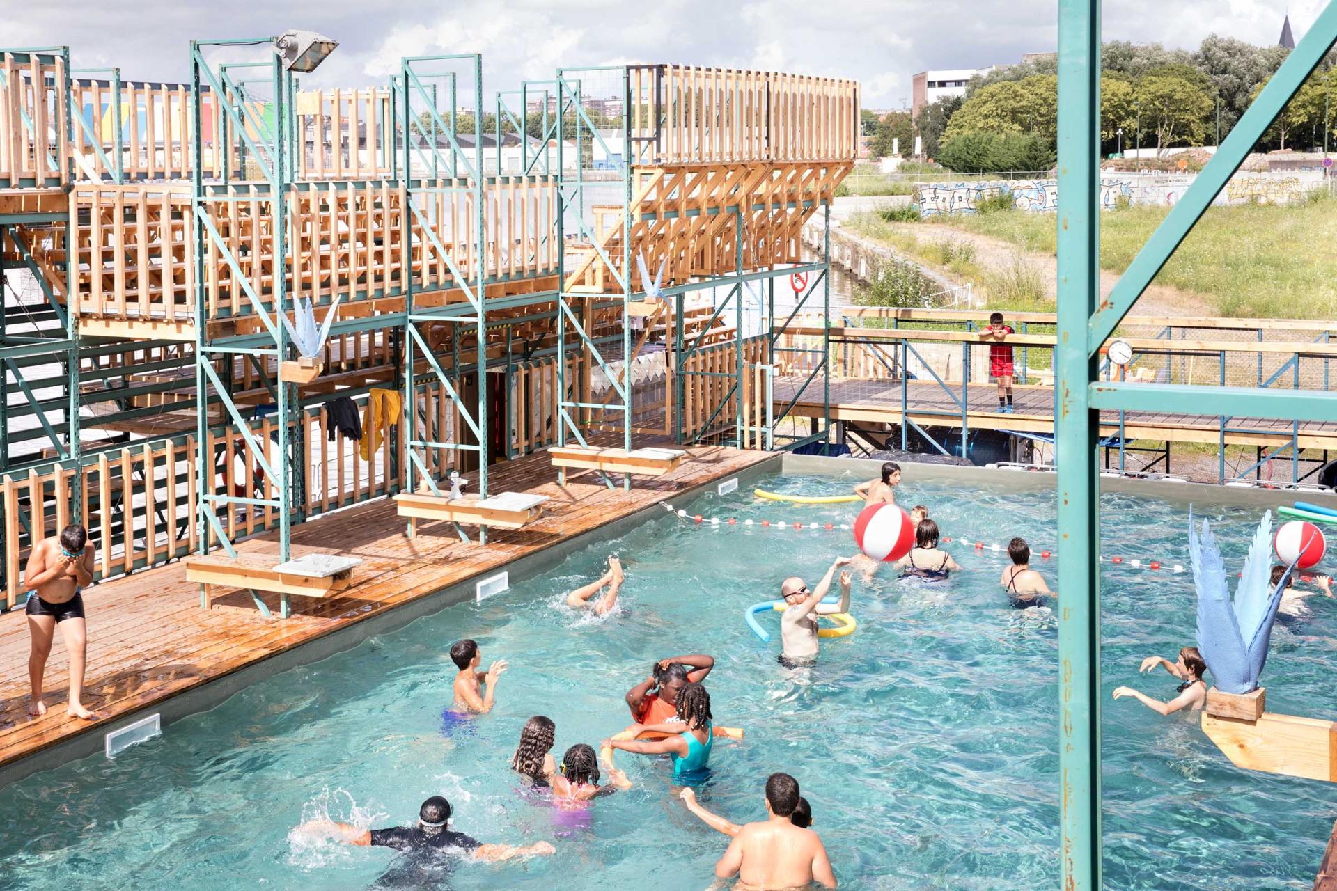 Decoratelier’s design for FLOW is built on a modular principle, meaning that it could be adapted to various different kinds of spaces and location. Moreover, the flexibility of the structure allows for modifications and new features to be added as the project evolves. For instance, FLOW did not feature a bar during its first summer, out of fear that this would have a gentrifying influence. Now that the pool is well established in the neighbourhood, and after a survey showed the pool’s visitors were open to the idea, a kiosk has been inserted into the existing structure – a good example of the open dialogue between design and construction that is at the basis of this project.