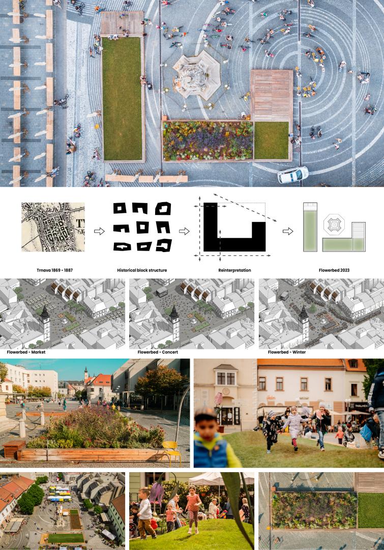 Despite the fact that in the past the city of Trnava tried several times to revive the square with similar urban elements, we are convinced that only after a complete historical analysis, prioritization and contextual design we can talk about a lively and perspective urban element that managed to bring life back to the square and create a vibrant atmosphere.
