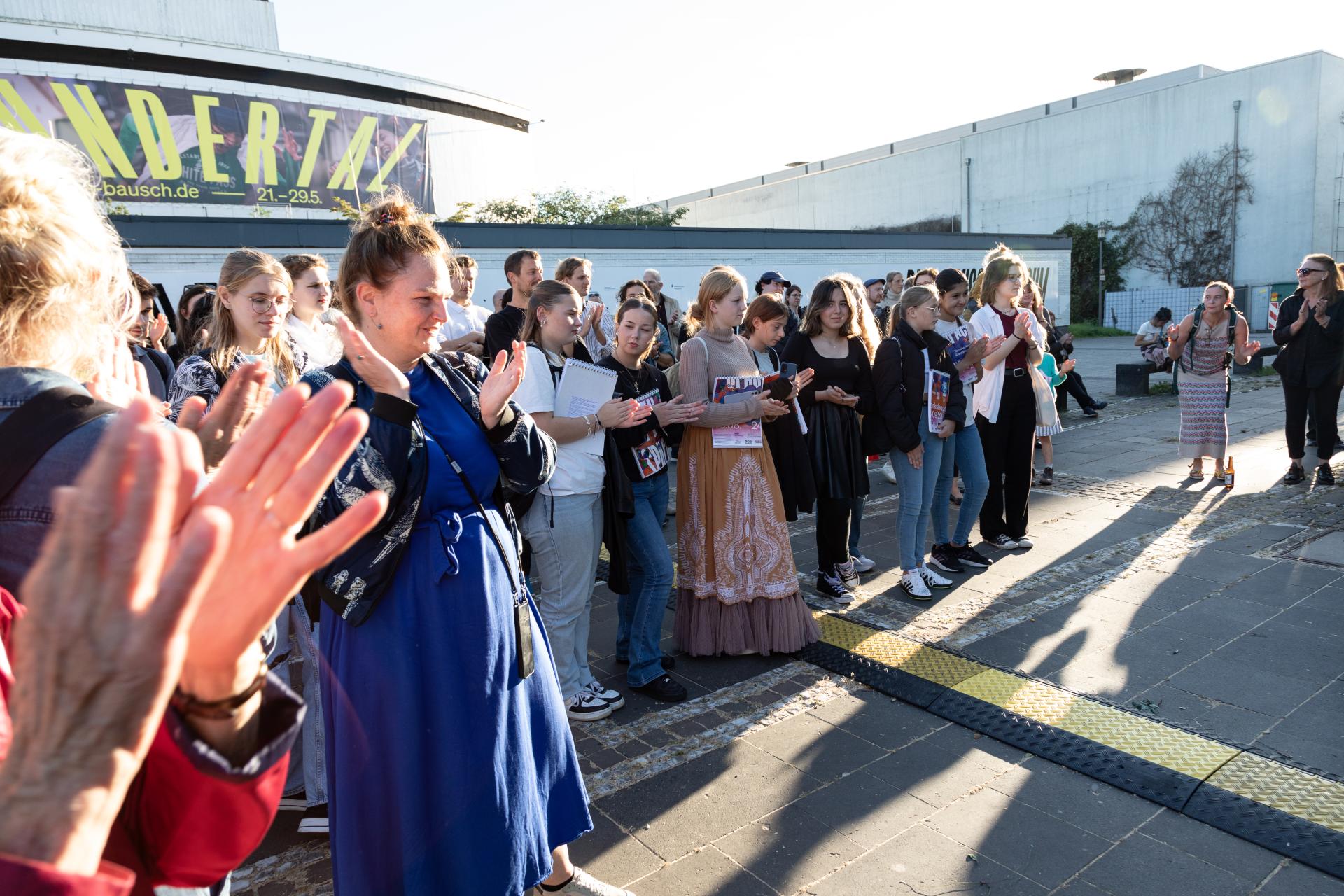 We reached a great intergenerational audience. The school performances in the mornings were full, playing to very diverse groups of young people and many different school groups, including very diverse young people from vocational colleges, young people from the special needs schools and the JEKITS-programme at the music school. 15 young people from the Pina-Bausch-Gesamtschule acted as Young Change Watchers, accompanying all productions, moderating the post-show talks with huge professionalism and documenting their experience with pictures and collages.