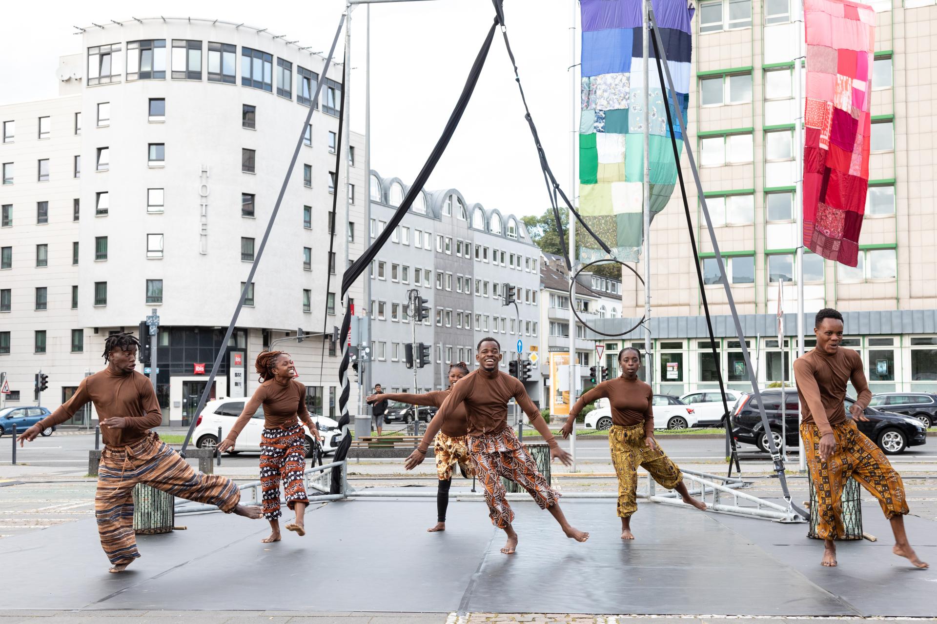 It was important for us to find access to the very diverse population of Wuppertal. One important project, connected to the festival, was an interdisciplinary workshop and open space we established in Wuppertal. We worked with young people, mainly of the African Community in Wuppertal, but also a.o. of Ukraine, Afghanistan, Syria and other countries on dance, video, painting, fotografie. Then at the end, connected with the presentation of the workshop, we invited the Dumanlé Company of Abidjan to work as well with this young group - in the end children, young people and adults were dancing together in a very impressive and touching way.