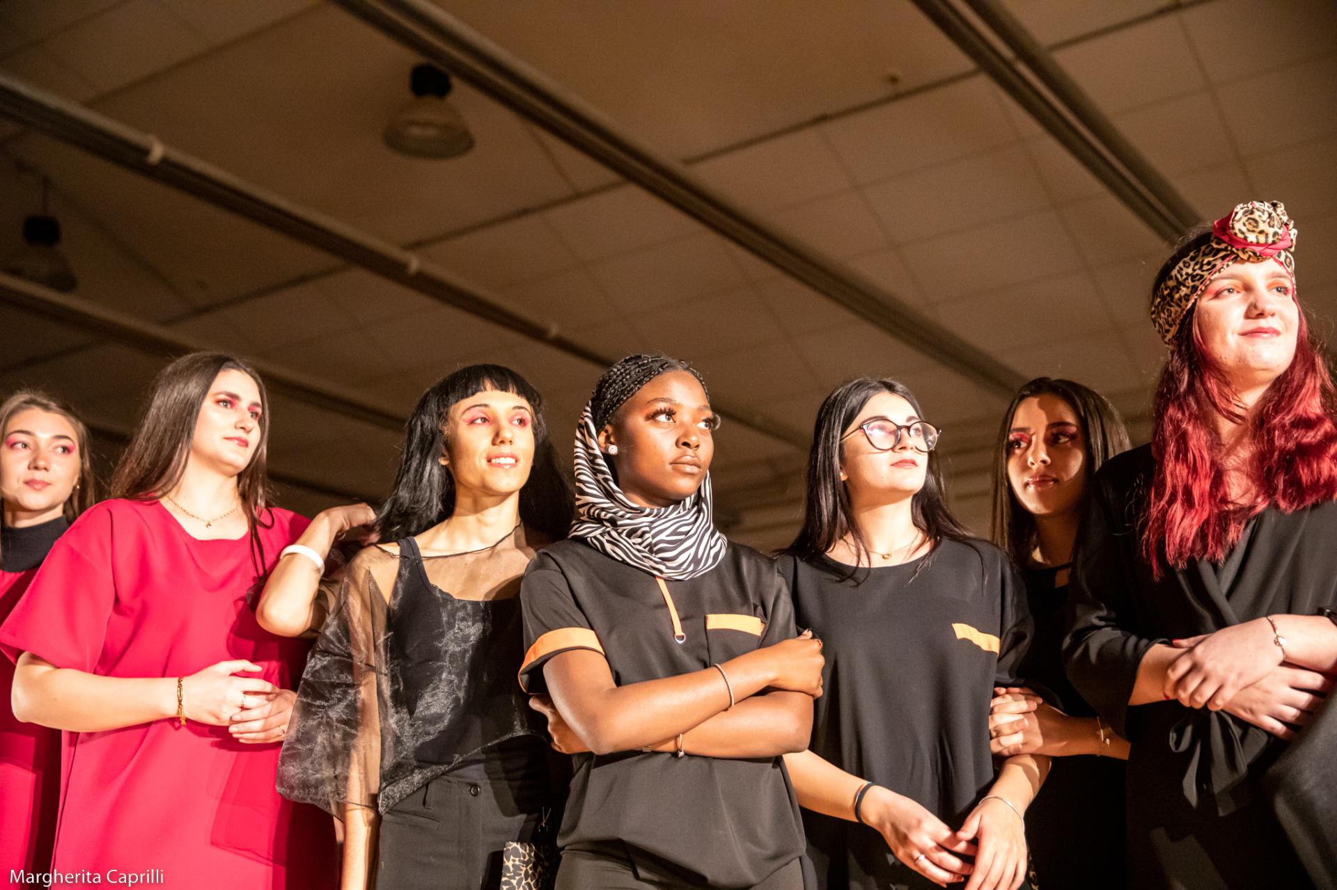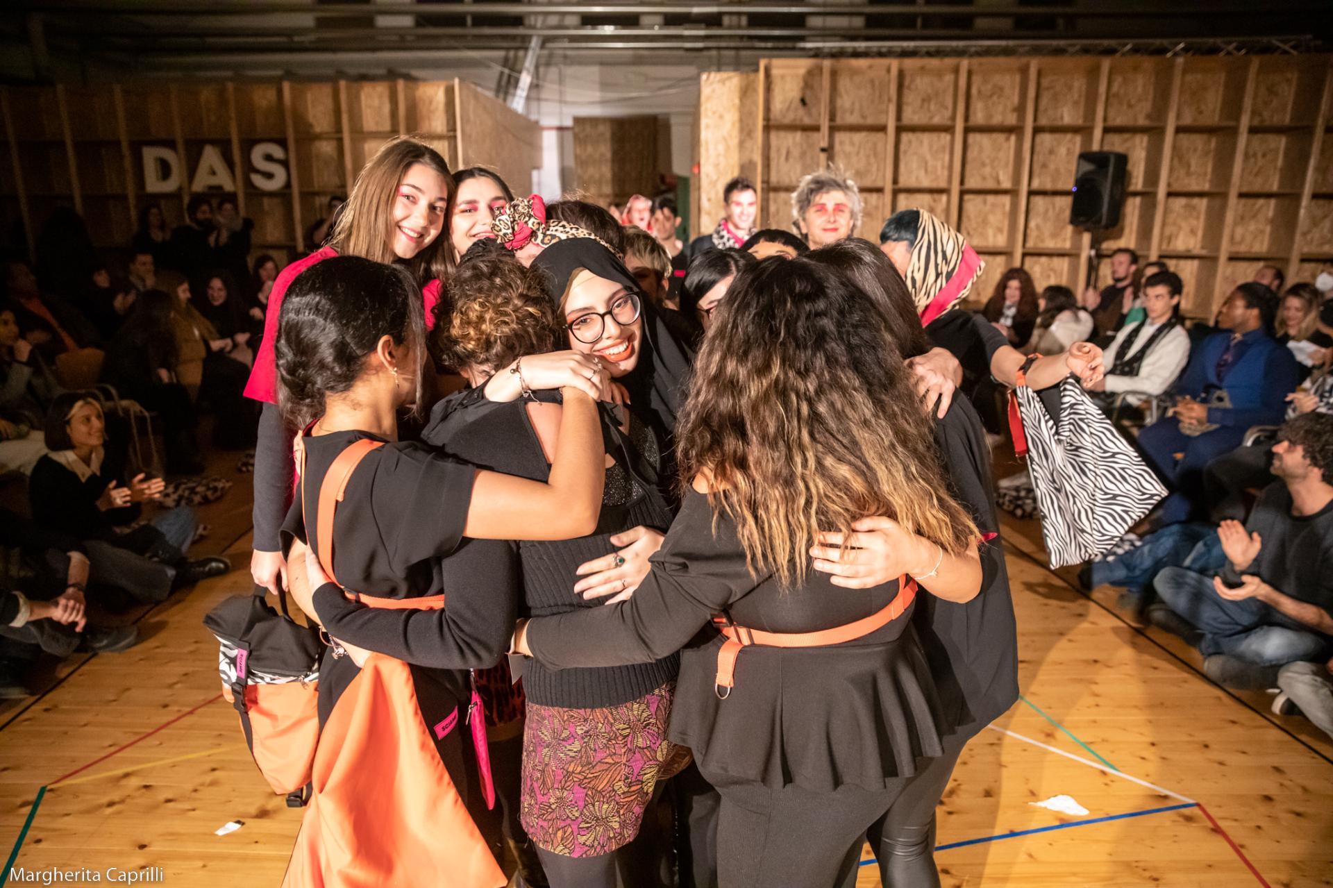 (A)The creation of SCIAME involved a network of professionals and organisations: the creative coordination was expertly led by a local textile professional; as mentioned before, the line is entirely produced by inmates from the prison in Bologna; a performance artist, hailing from the local area, guided the conceptualization and visual design of the fashion event, skillfully directing a cast of nearly 20 novice performers, including the girls participating in the training course. Those collaborations can help stimulate the local economy by creating new partnerships and business opportunities for both the professionals and the students.