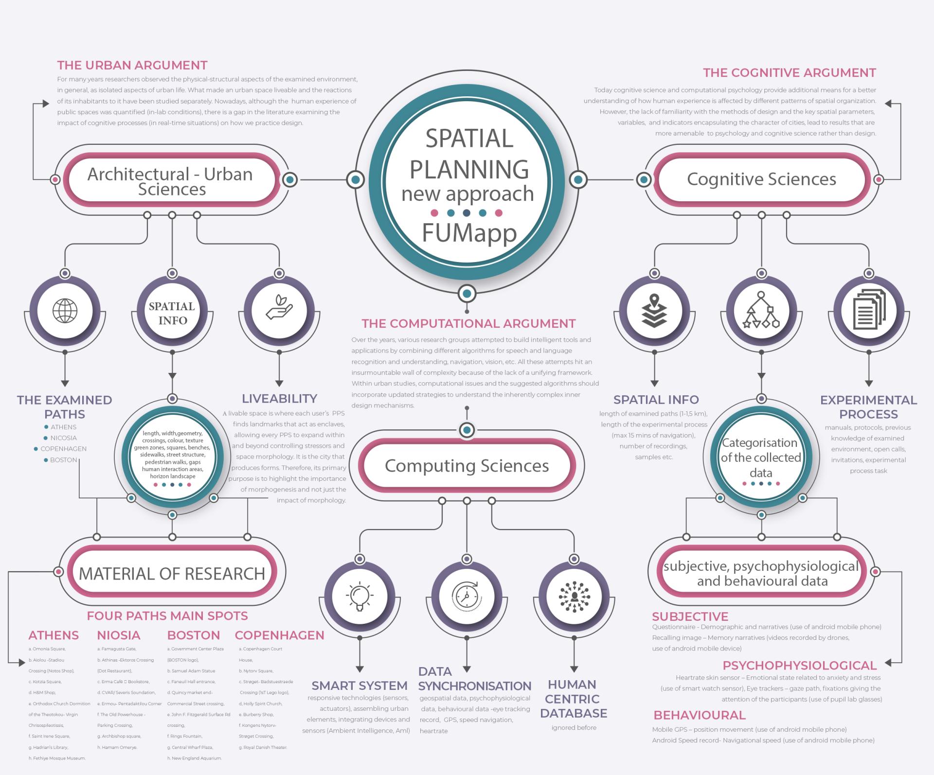 This project has shown that a change in urban design strategies and planning proposals was observed every time a significant social, historical, etc., crisis happened. Although the need for a change in design methodologies and strategies was identified in all crises, they have mostly stayed the same. It recognizes the need to reformulate and redefine how we plan in big crises and introduces a planning approach that responds to today's crisis: the crisis of Anthropocenism. More precisely, the thesis is focused on the analysis of questions of three primary domains: the development of urban design strategies based on users' reactions (urban), the spatial computational application of the recalling spatial information processes in design (computation), and the recording of cognitive reactions in the real environment (cognition). Through the questions of this project, topics such as the role of the user in design, the way to deal with the economic and health crisis through the navigation achieved by design, how the rehabitation of the "multinational" urban space is happening now, how can the sustainability be supported through the reduction of new building structures but also with the understanding of the meaning of space, the data-driven urban intelligent and its role in the every-day life of users. The project's recordings presented design solutions that came from users from all over the world. The concepts of global and local in this work have been joined. The metrics are carried out locally by participants, both locals and immigrants. The personal experience and users' recordings are translated into spatial data, allowing the locating of elements that produce neighborhoods in a global field and vice versa. For example, in Nicosia, at the point of the green line, the project recommends a redesign approach with green spaces that are less vast and have clearly defined boundaries and uses.