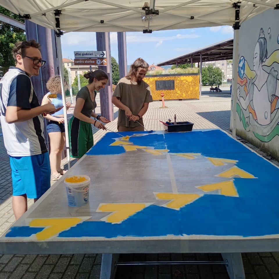 The key objectives of our project in terms of inclusion extend beyond mere accessibility to foster a cultural inclusion that embraces diversity and engages the community. The newly developed collective area is intentionally designed as an open space, removing barriers to access and welcoming everyone who passes by. Our commitment to cultural inclusion is manifested through the project's goal of creating a space where people from various backgrounds can come together, fostering meaningful connections and conversations. This inclusivity was actively pursued during the construction phase, where the building of benches and the painting of the table-tennis table became collective endeavors. In two dedicated workshops, individuals from different cultural groups that utilize the area actively participated, demonstrating their interest in the ongoing transformation.