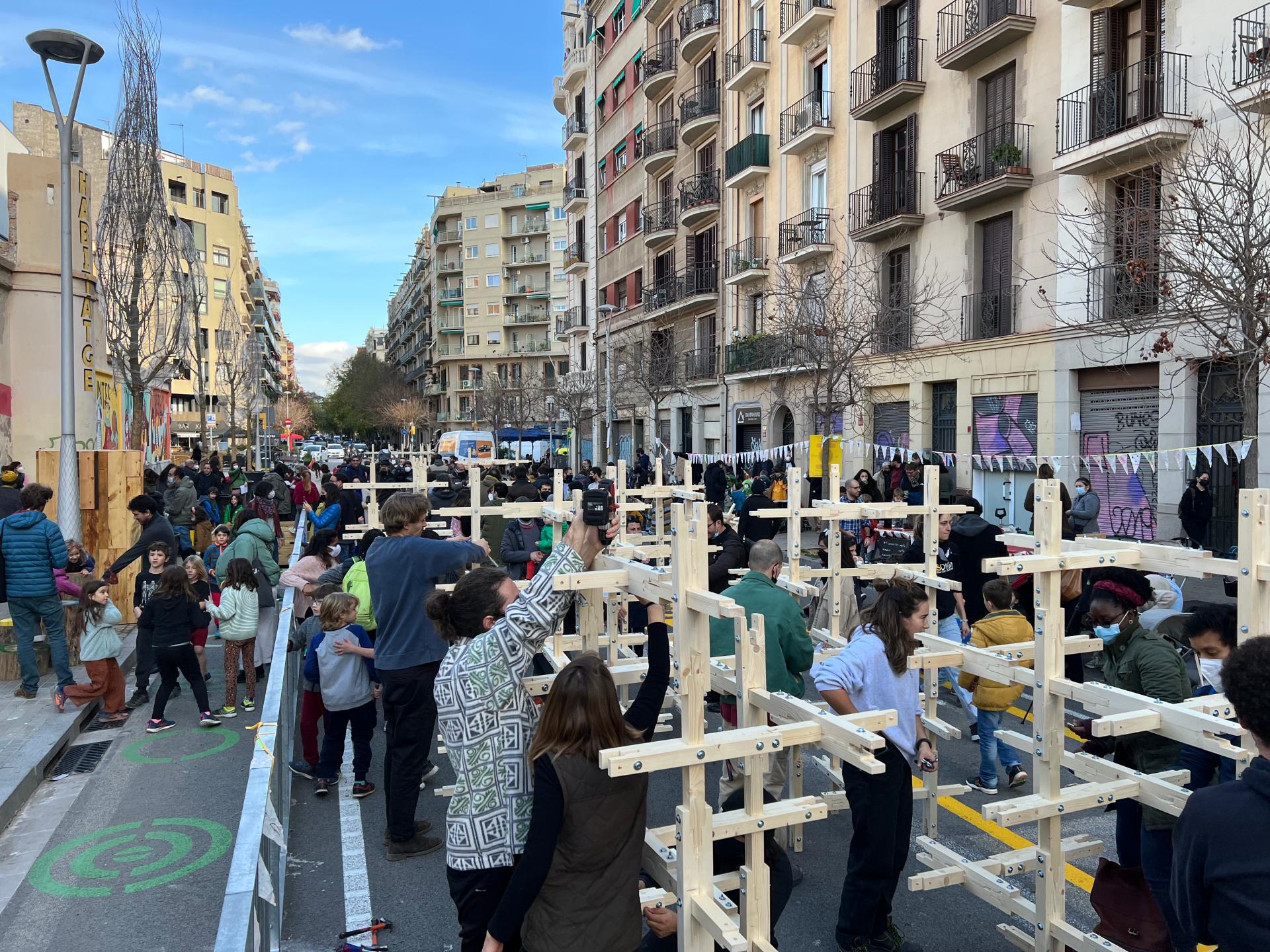 The design students from IAAC and Elisava, aided by design professionals, collaborated to co-create prototypes with the participants, which bridged the realms of architecture, tactical urbanism, public space and citizen engagement. Various workshops were organised, allowing students from the schools and local residents to be involved with the design, fabrication, implementation and final prototypes, providing their feedback throughout.