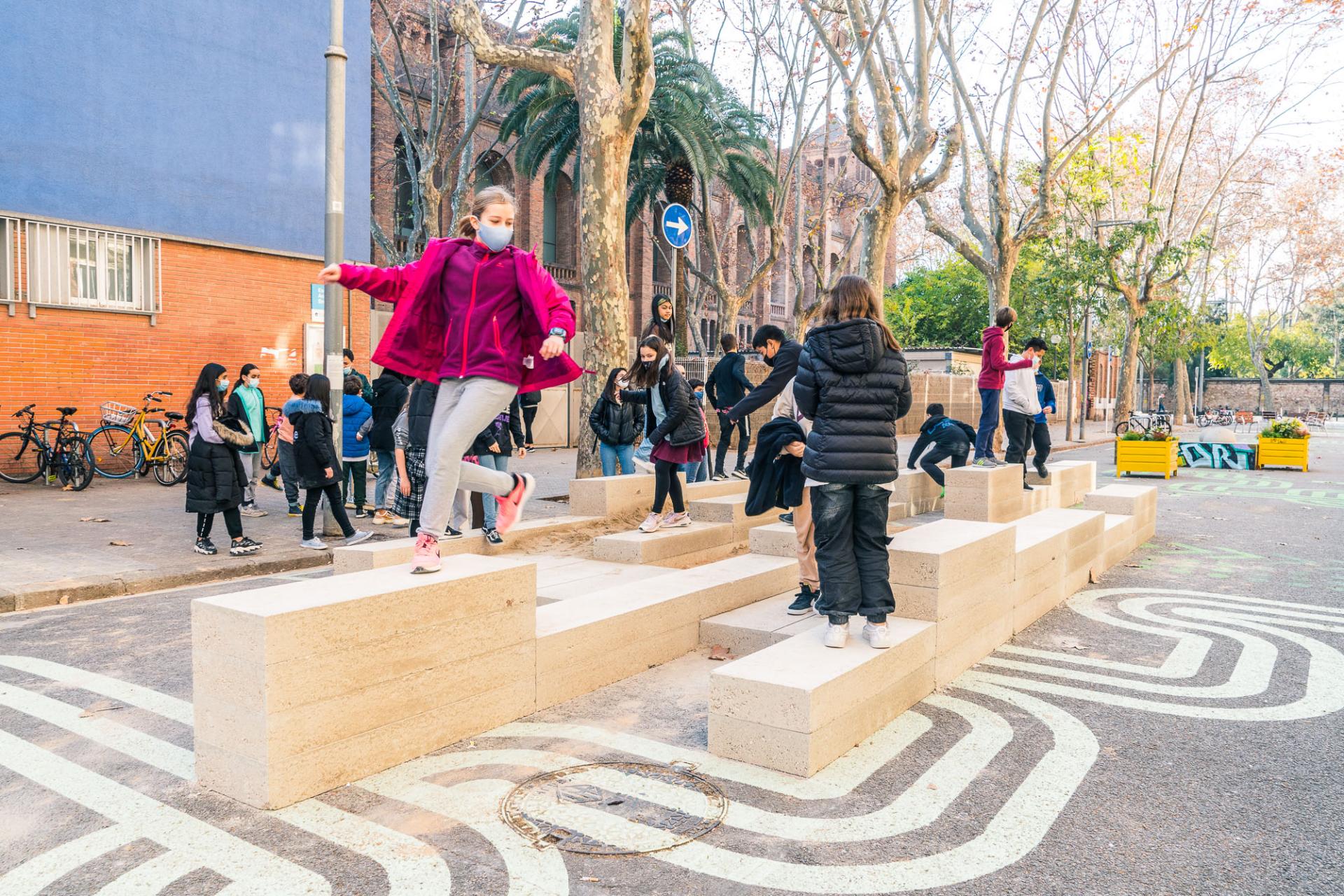 The project co-designed, co-fabricated, implemented and tested two prototypes on the public space gained in front of the two schools in Barcelona.