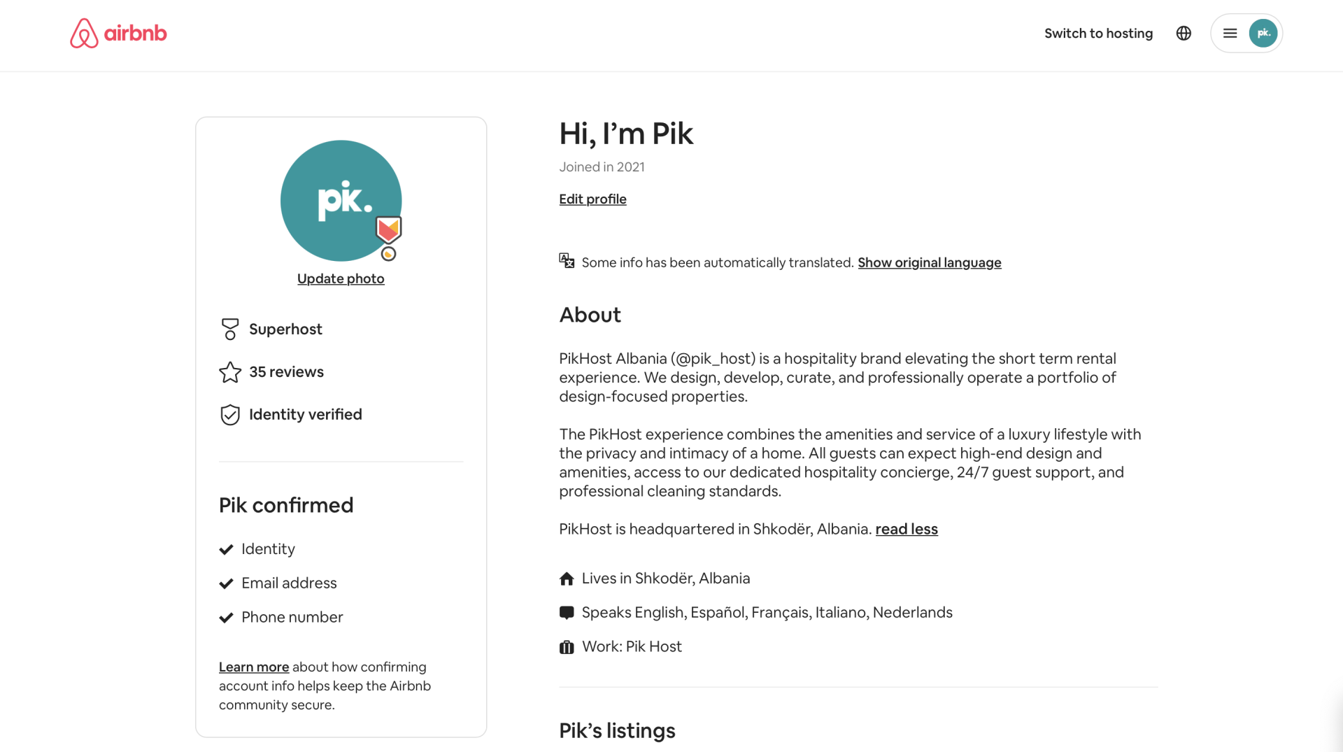 PikHost, a short-term property management company, distinguishes itself with its innovative approach to promoting culture, tourism, and sustainability in northern Albania. The company goes beyond the traditional property management practices by conducting activities such as watersports and organizing sports events to attract more tourists to the area.