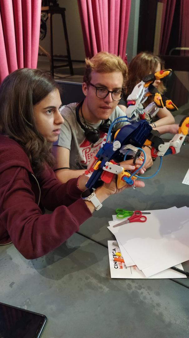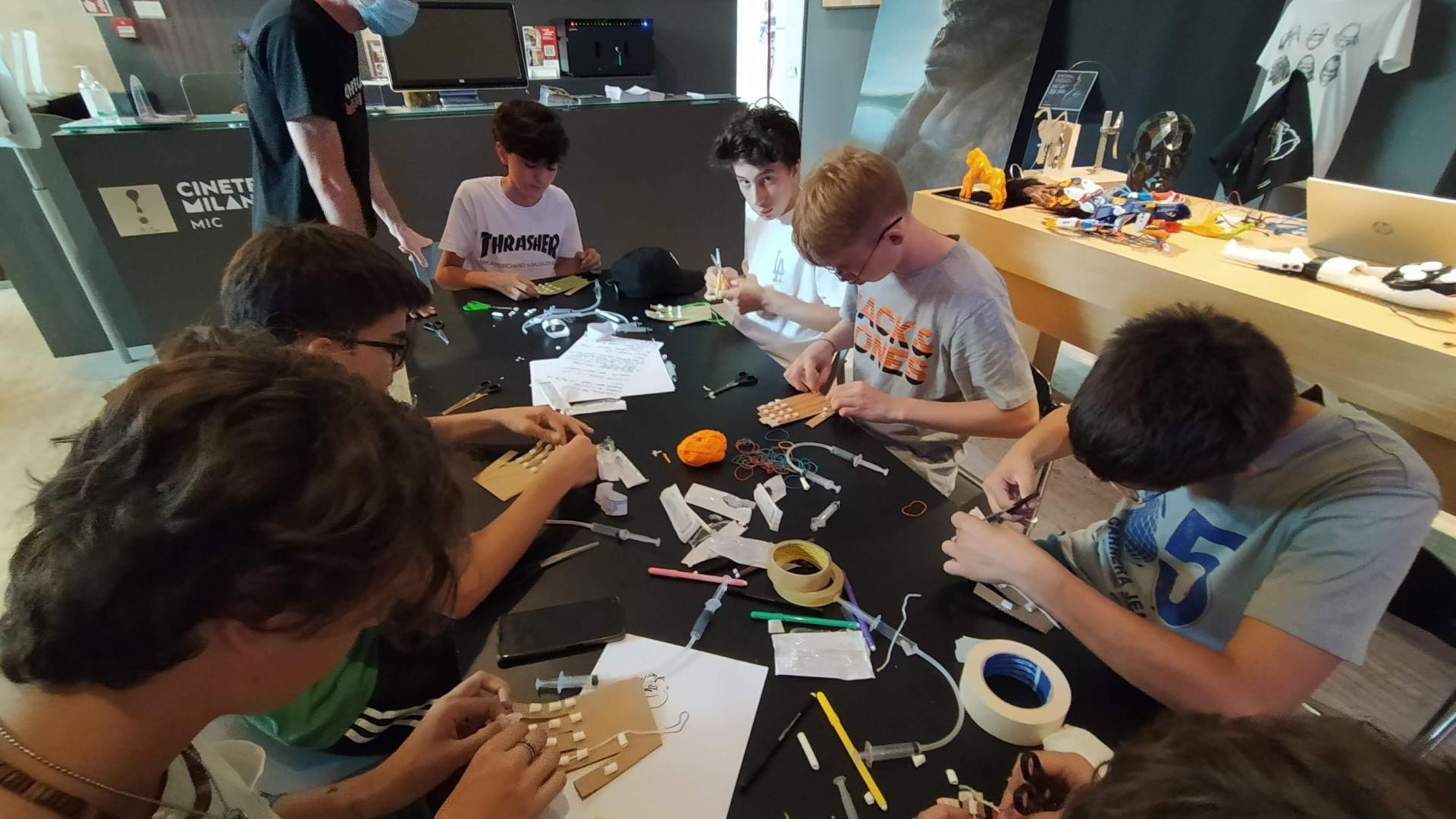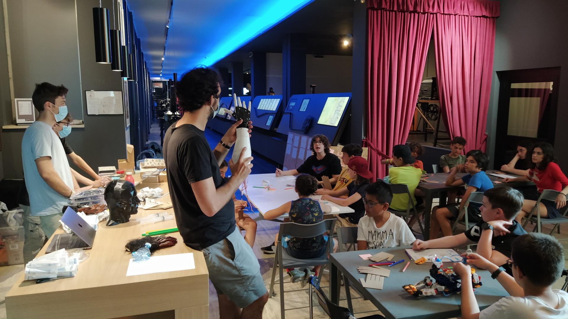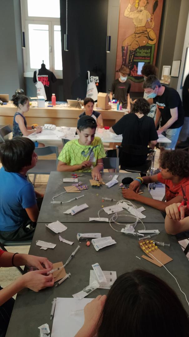 Good Vibes Educators took care of the full-day program in each week of the camp, proposing to the kids to investigate the technological aspects of cinema through interactive activities. For this reason, the proposed theme focused on the world of special effects, exploring analogical and traditional techniques related to animatronics together with the most modern special effects based on digital technologies. Participants experienced STEM topics related to the functioning of mechanical structures for movement, and to digital tracking which, together with artificial intelligence technologies, allow computer graphics animation. All within an educational planning that put them in a position to concretely experience the topics covered through hands-on activities. During the three weeks, the delivery was accompanied by a research analysis using qualitative methodologies to collect feedback on the performance of the activities. The day was divided into two main moments. The morning was dedicated to the construction of an animatronic hand with simple materials, in reference to the giant animatronic hand. The afternoon focused on the theme of digital animation, starting from a movement activity inspired by the discipline of parkour aimed at imitating the movements.