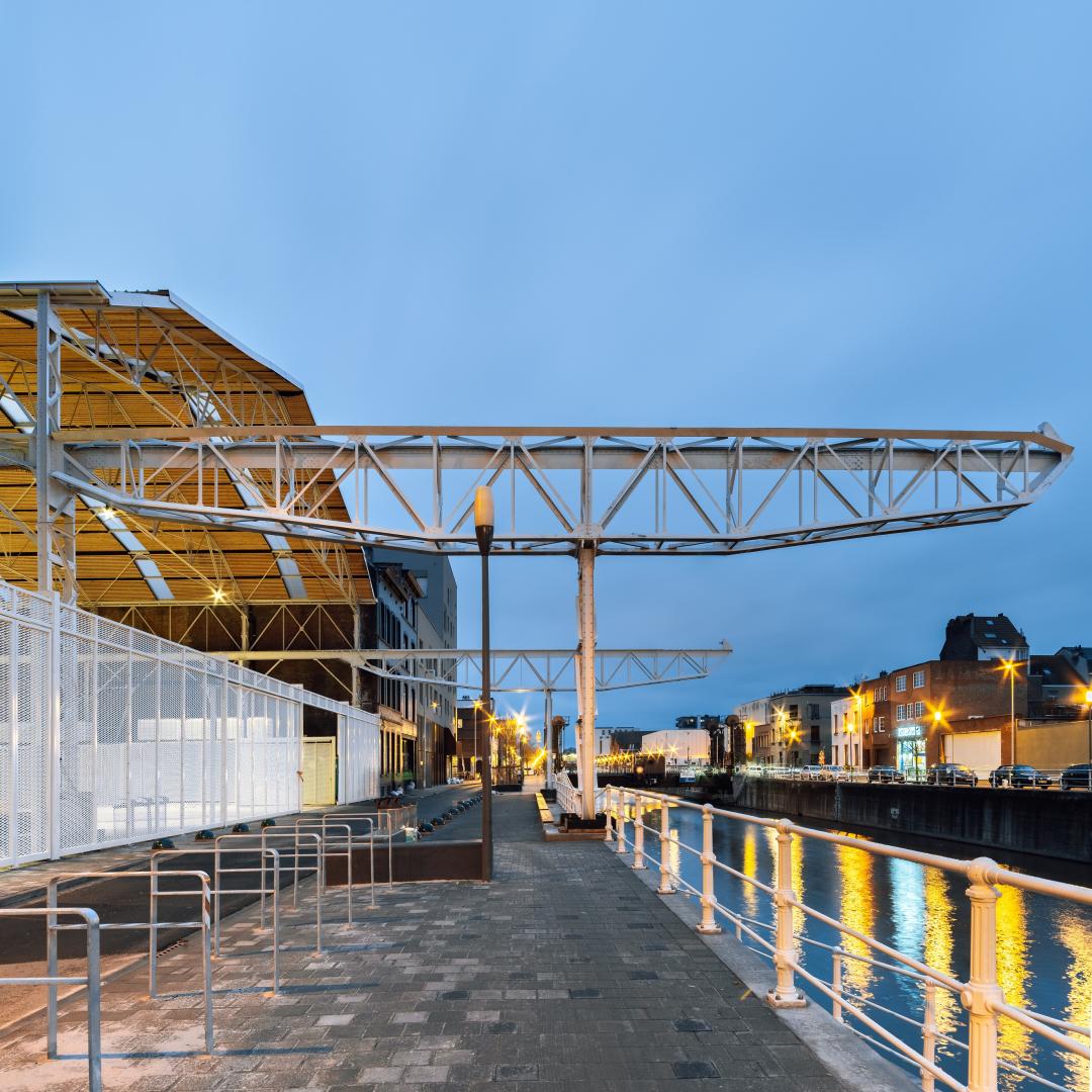 Development of a public space in the interior of an urban block, improving the living conditions in the Heyvaert district, by creating links between the neighboring streets and the canal. This partially covered space will allow the organization of creative, cultural, sports or festive activities. It will be reserved for pedestrians and cyclists in order to improve the local soft mobility network. The Quai de l'Industrie between Rue de Gosselies and Rue de Liverpool will be developed into a meeting space and a link with the canal.