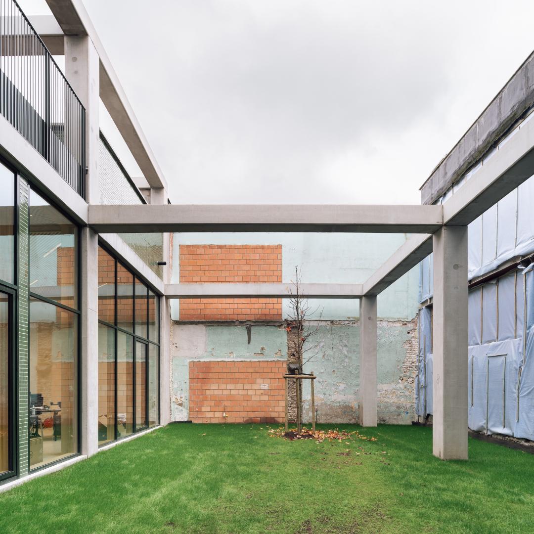 Development of a public space in the interior of an urban block, improving the living conditions in the Heyvaert district, by creating links between the neighboring streets and the canal. This partially covered space will allow the organization of creative, cultural, sports or festive activities. It will be reserved for pedestrians and cyclists in order to improve the local soft mobility network. The Quai de l'Industrie will be developed into a meeting area.