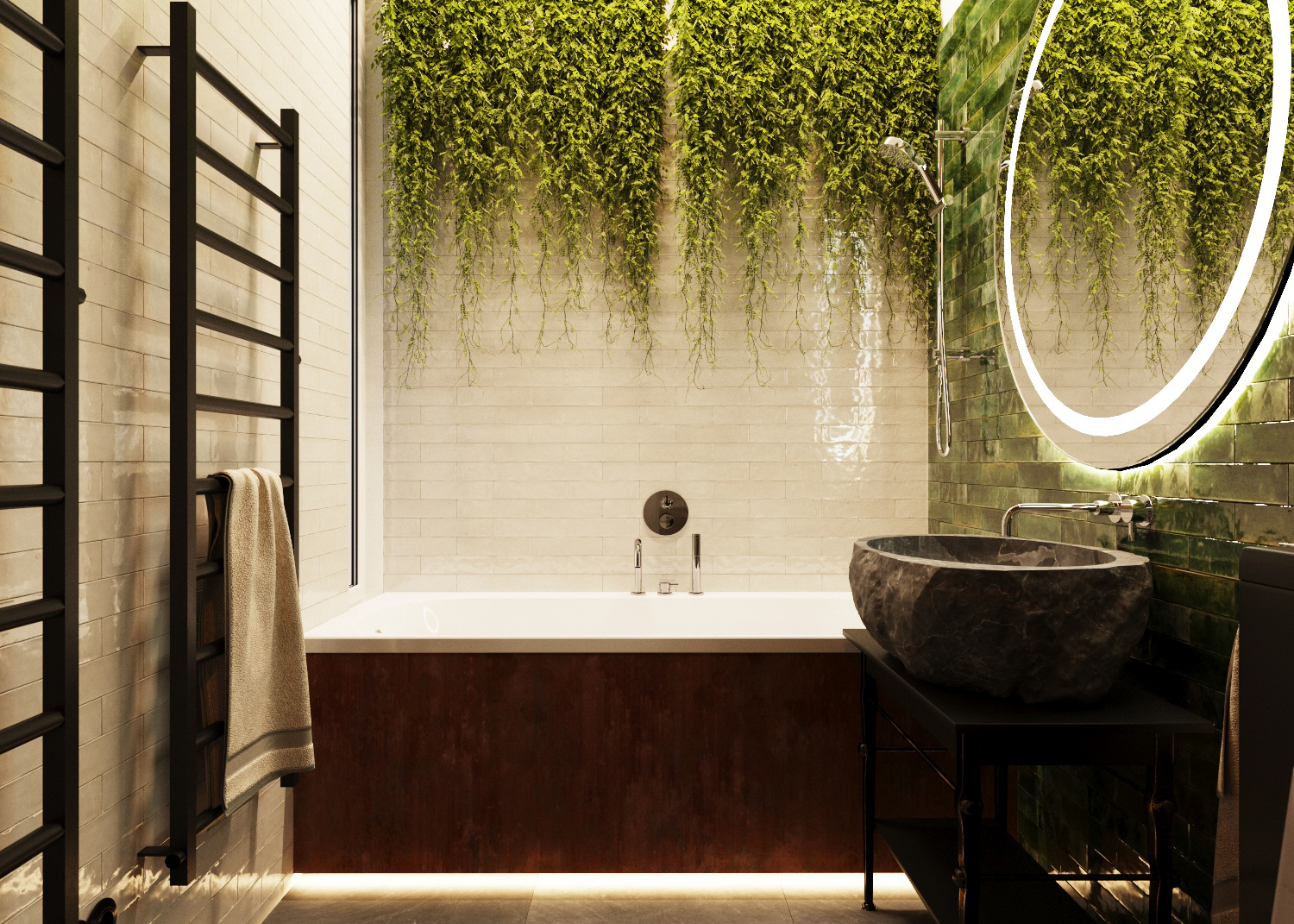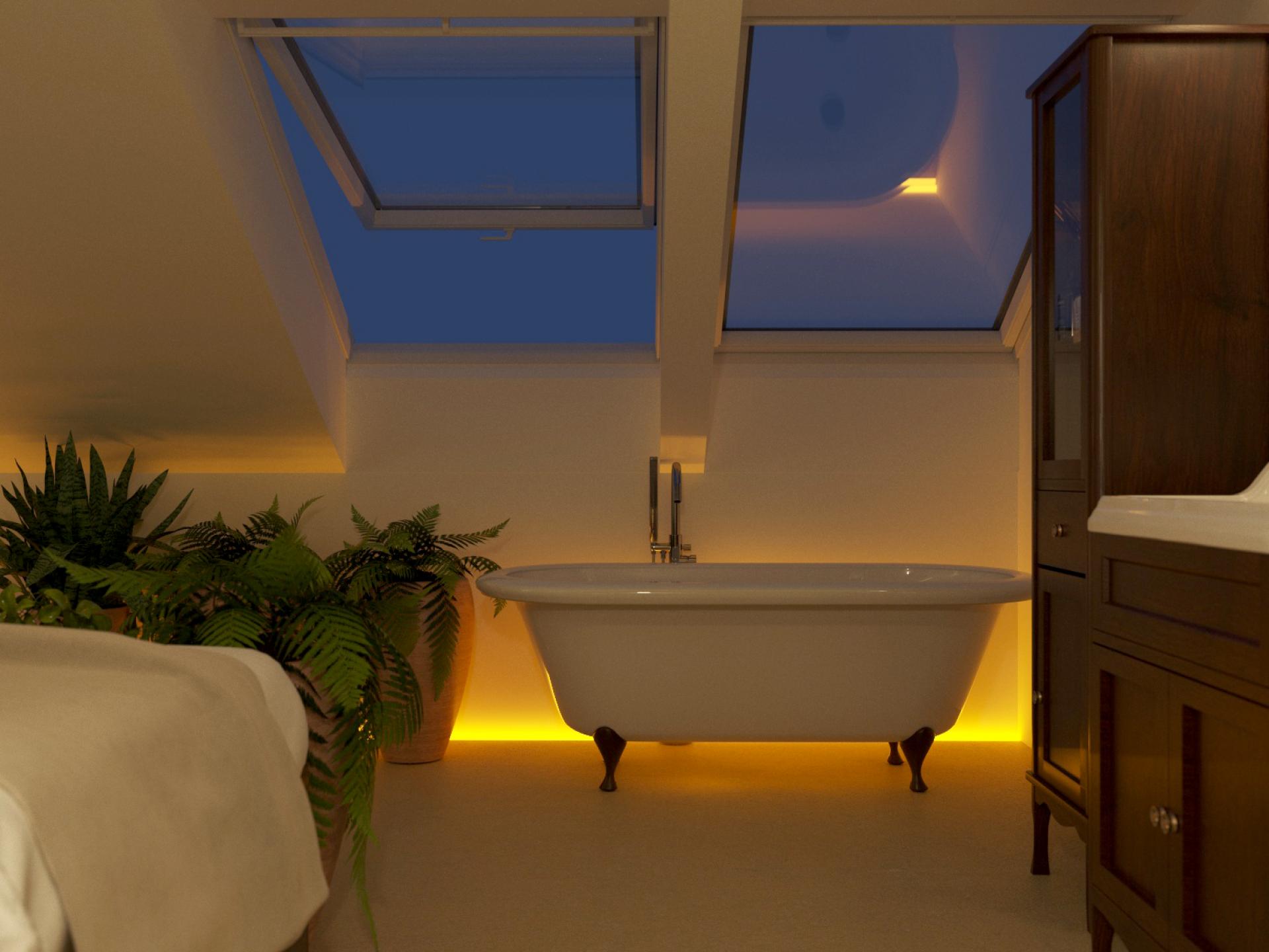 Inside the apartment the biophilia design was focused on the best level of daylight and connection with the environment. Strtegically position of the roof windows helped to reach more than 300 lux at the 65 % of apartments area.The high level of daylight is reached even in the winter periods.