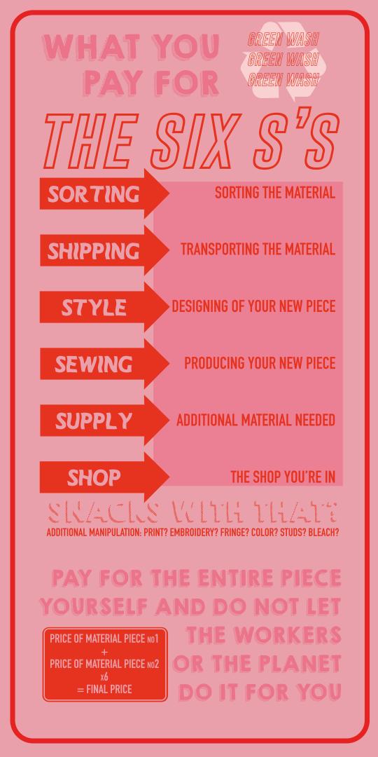 We provocatively play with known terms like 'GREEN WASH' and 'SWEAT SHOP' to even further acknowledge the urgent act of positive change we need to make.