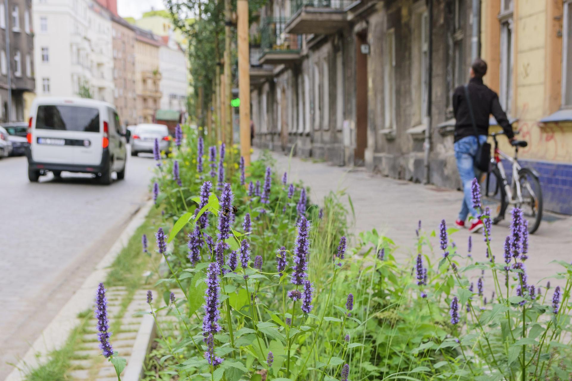 Daszyńskiego street had been remodeled as better quality local public space. New greenery was introduced, and the sidewalk slopes had been corrected to direct the storm water into the bioswales. The goal was to demonstrate the potential for nature-based solutions to improve living conditions in the city and create better conditions for shops and services in ground floors of tenement houses to develop.