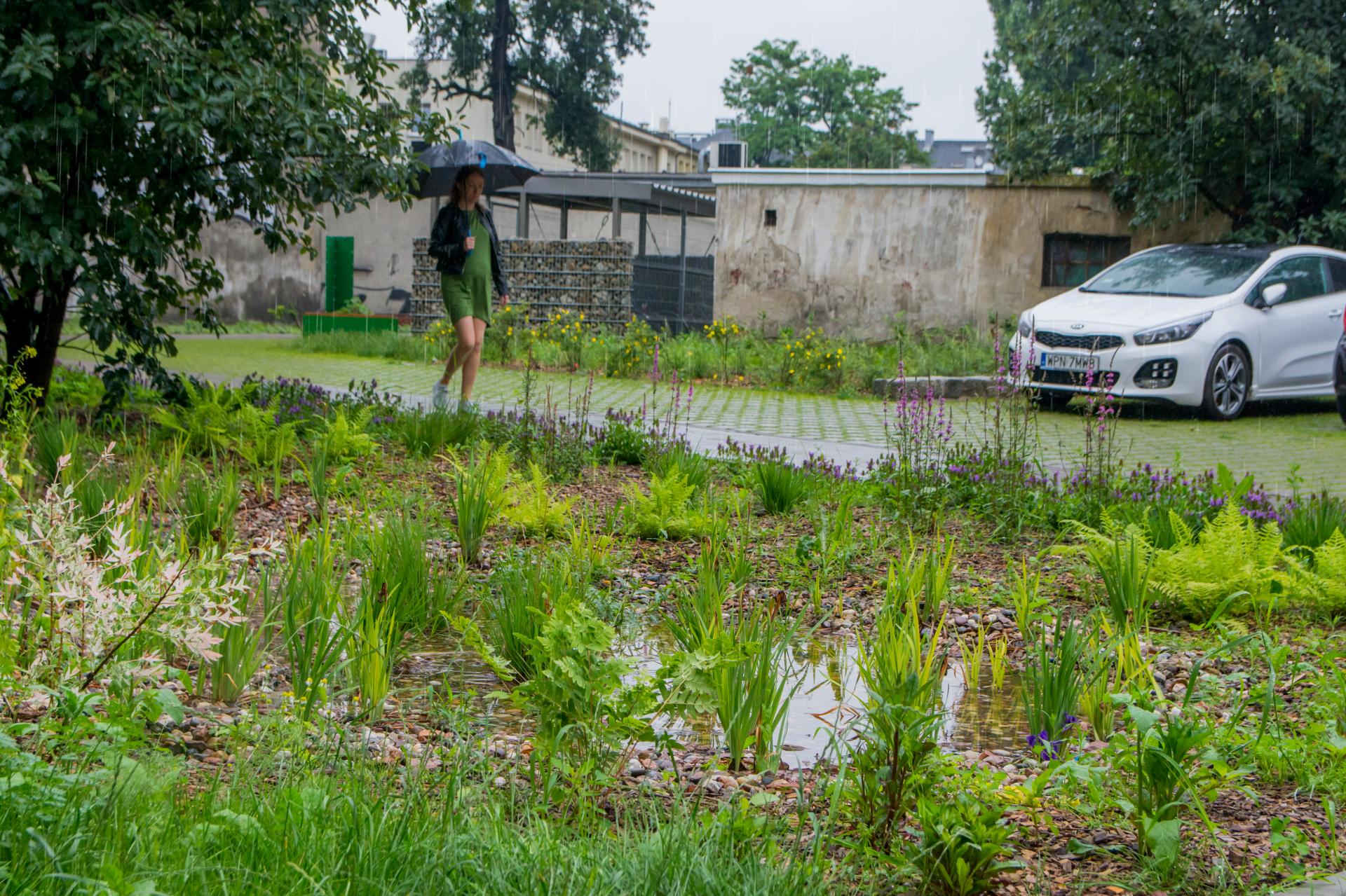 The public space has become hostile, and the optimal way to mitigate this effect may be a return to nature. Imitation of nature is used as an excellent example of a well-designed mechanism that can adapt to existing conditions. The number one problem to solve was the local and further city resilience to climate change. In order to significantly influence this issue, small and understandable solutions have been implemented. Their strength lies in the simplicity and ease of execution. The educational aspect allows to raise children in contact with nature. They can observe and learn from it, as well as commune with nature, which we lack.