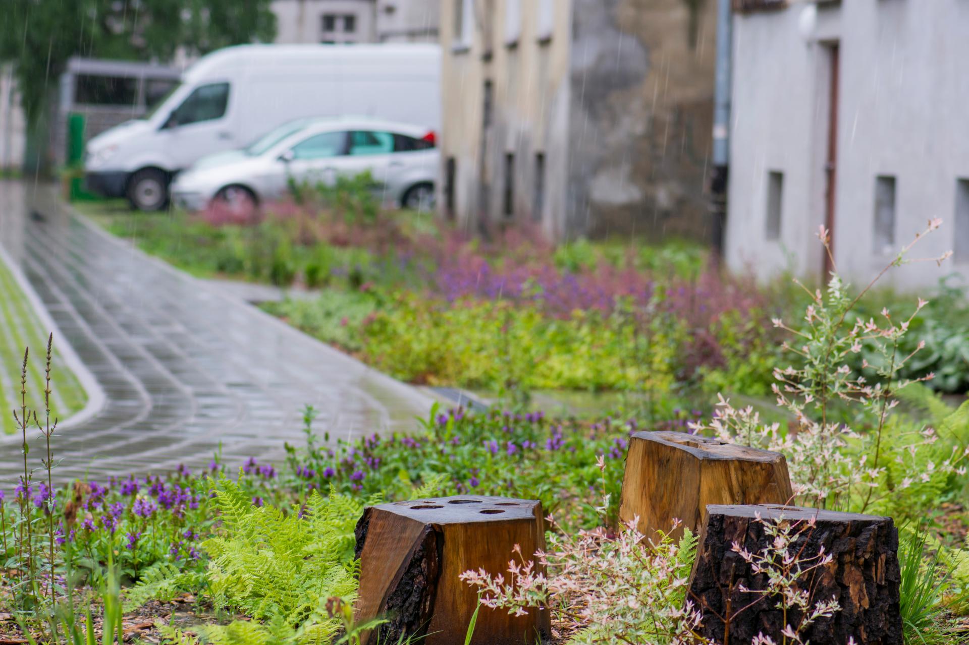 In Wrocław we have designed nature-based solutions - demonstrative projects to tackle the dual risks of flooding and heat stress. Solutions are located in the Olbin district of Wrocław -- Daszyńskiego street, yard 3 and 4, within a dense urban area that ranges from wealthy to socially deprived. Various forms of greenery were introduced to create the ‘green street’, shading pedestrians, cars, and passengers waiting at the tram stop. These included planting trees, wooden structures with greenery - ‘parklets, also creepers and climbing plants on buildings. Two courtyards among tenement buildings have been redesigned and renovated including a whole package of nature-based solutions – swales and rain gardens help rainwater to soak into the soil, and new trees and greenery providing shade. Community gardens and natural play areas give more space for the local people to socialize and produce their own food. Biodiversity also benefits from the improved habitat, birdhouses and insect hotels.