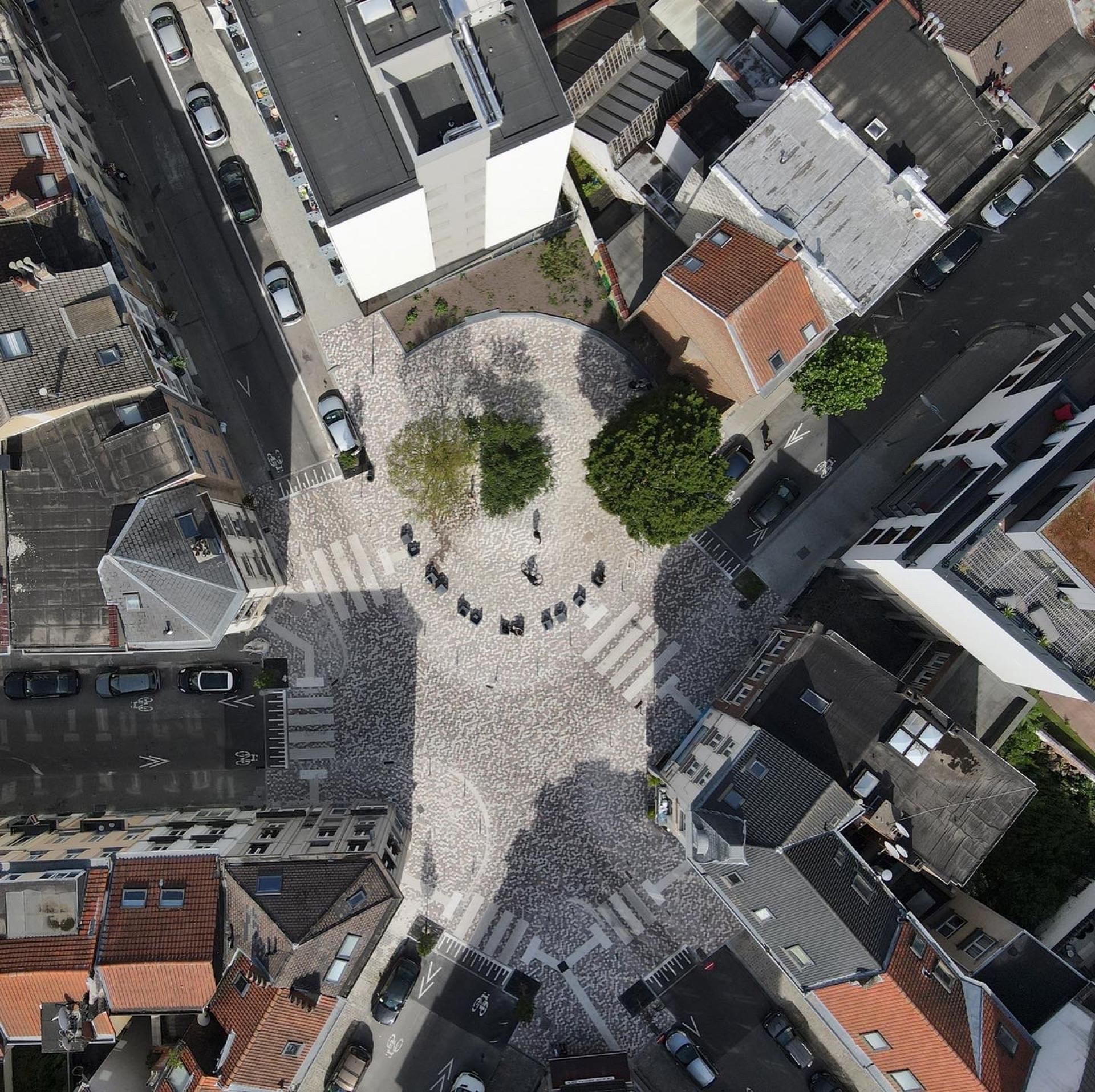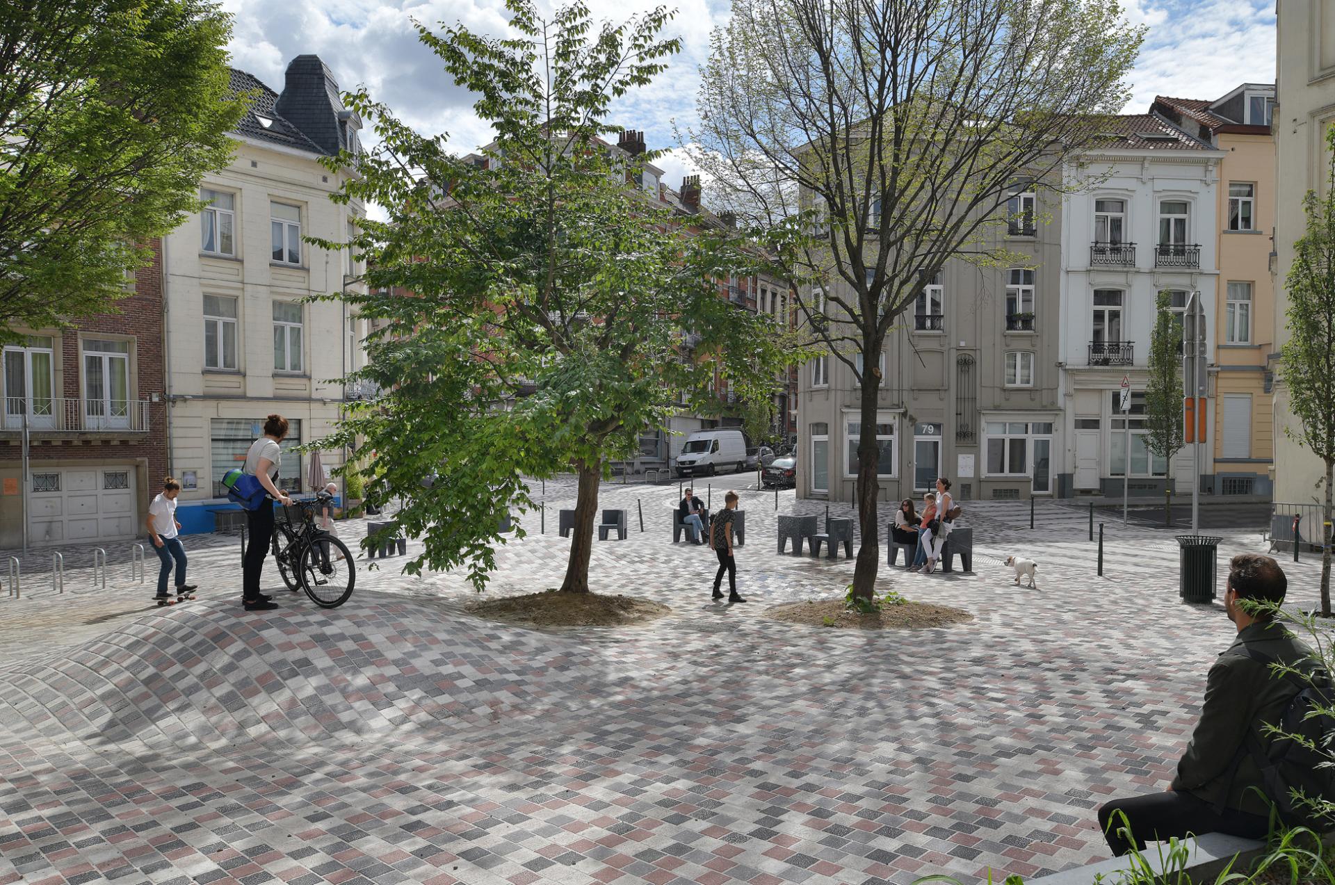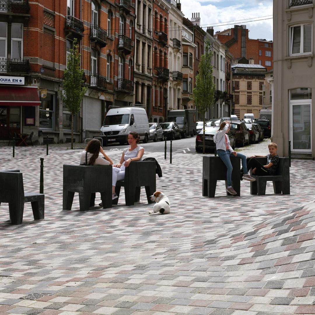 Innovative, fun and aesthetic, this layout becomes a new symbol of the district. The square is visible as one large space from all corners of the crossroads and guarantees the safety of the users. The extension of sidewalks on the different corners of the square allows the installation of new terrasses for the existing cafes and restaurants, in order to reinforce the conviviality and ensure a more continuous presence on the public space.