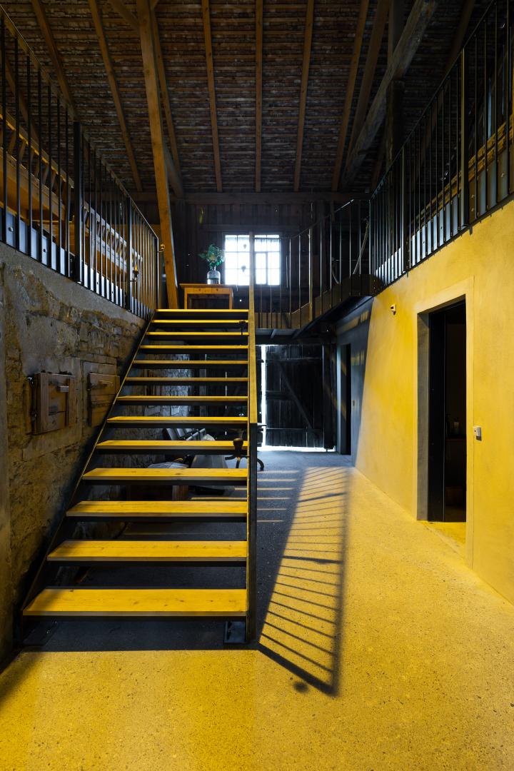 In the conversion and refurbishment process more parts had to be taken out than expected, but all the materials were stored and later reused in the building. In the timber construction only the rotten parts were exchanged, everything else stayed in place.