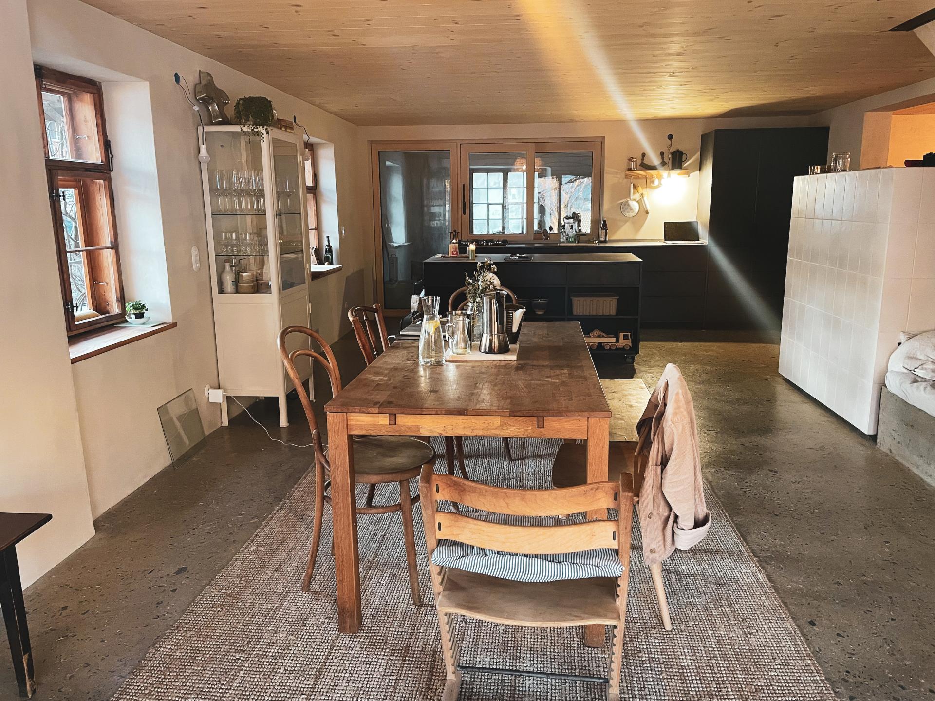 By restoring and retaining the existing appearance as far as possible, the project enhances the historical building culture. The old wooden trusses, which had to be removed, were only lightly sanded and reinstalled. The entire façade on the east side was retained in the same wooden blanks. Old building elements can be found throughout the house. A new wooden shingle façade, typical of the region, was added to the façade of the residential building. Inside you find a clear modern line of architecture, that creates a special aesthetic due to the materials used and the combination of old and new.