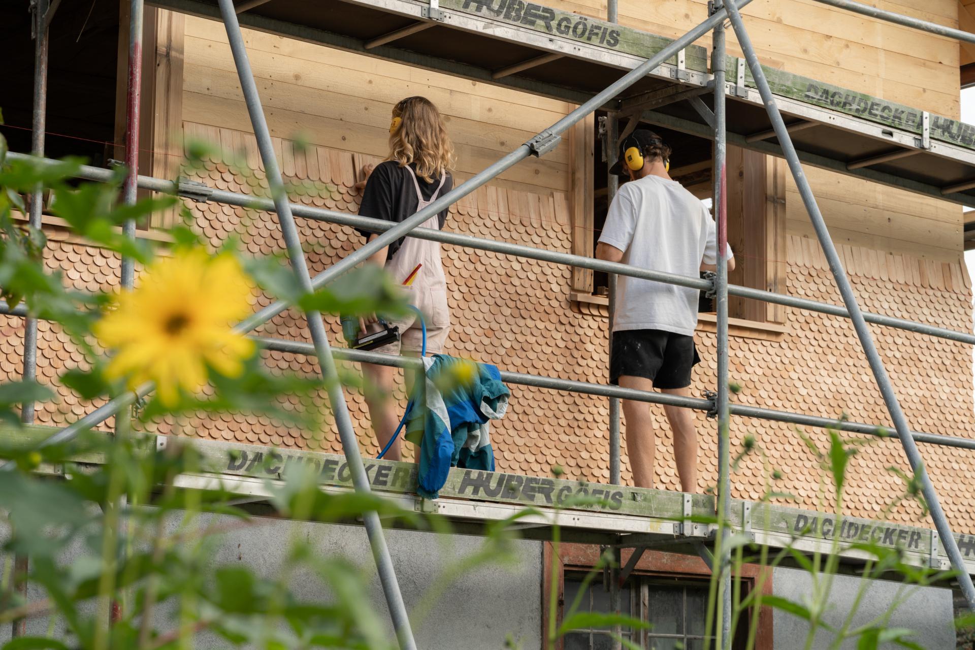 The wooden construction company Marte Holzbau was in important partner throughout the project, as well as the rammed earth pioneer Martin Rauch. Energy consultants, plumbers, historians of old buildings, carpenters, roofers and structural engineers were involved.
