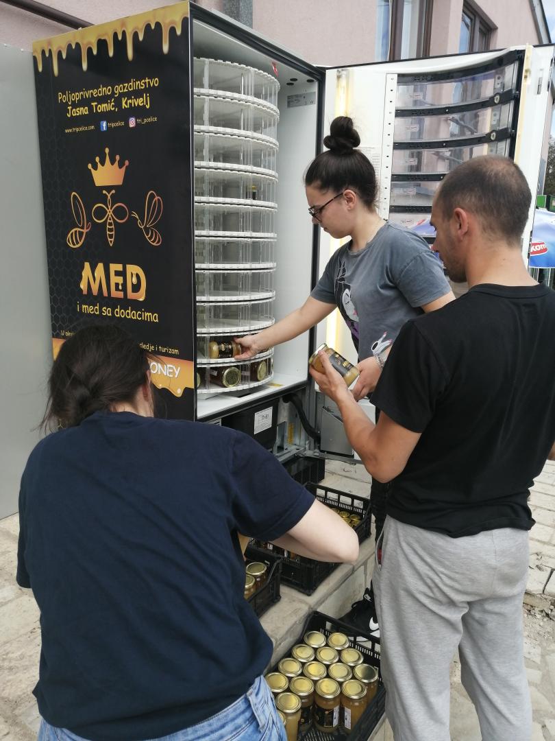 The latest way of selling honey in honey dispensers is a new, innovative way of marketing domestic honey at the local market which, thanks to the project "For Cultural Heritage and Tourism" of the German GIZ Foundation, enabled the products from the apiary to find the fastest and safest way to consumers. Whit an accent placed on the market of products in small packages. Honey and flavored honeys are intended for local consumption of our honey lovers and tourists.