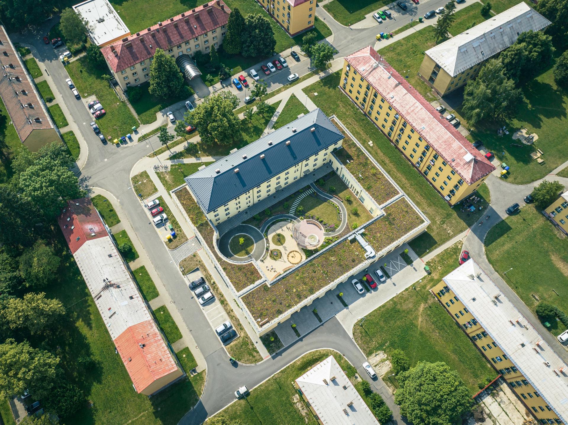 Dealing with the effects of climate change is a major social challenge. The Poruba Municipality, as a representative of the public administration, has long sought to set an example for other municipalities or private investors by including various adaptation measures in all its projects. In the nursing home, rainwater management measures such as a green roof, permeable surfaces in the car park and atrium, and systematic planting were used. In addition, the energy consumption of the renovated building has been significantly reduced.