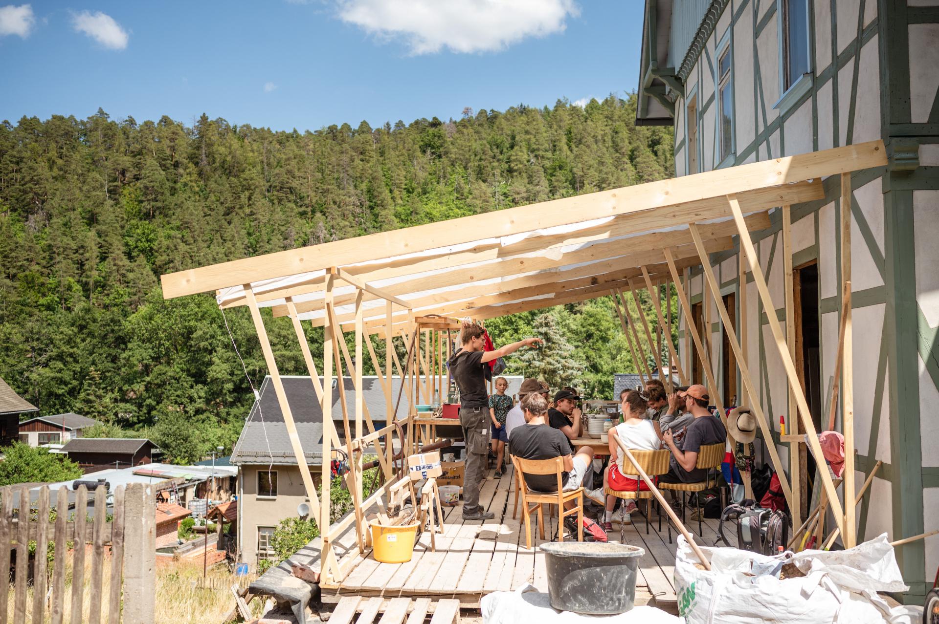 Our events and learning formats open up a low-threshold access for people from the village and the Schwarzatal region: During the learning formats "Offene Baustelle" and "Bauschule" and during the annual “Tag der Sommerfrische" (day of the Summer Retreat) the door is open for interested people and neighbors. All people can be involved, whether they bring expertise or memories of the past. We target people of diverse backgrounds through a variety of outreach channels: Through social media, through local and regional news coverage, through visibility in the community through posters and postcards, and through press outreach by our stakeholders.