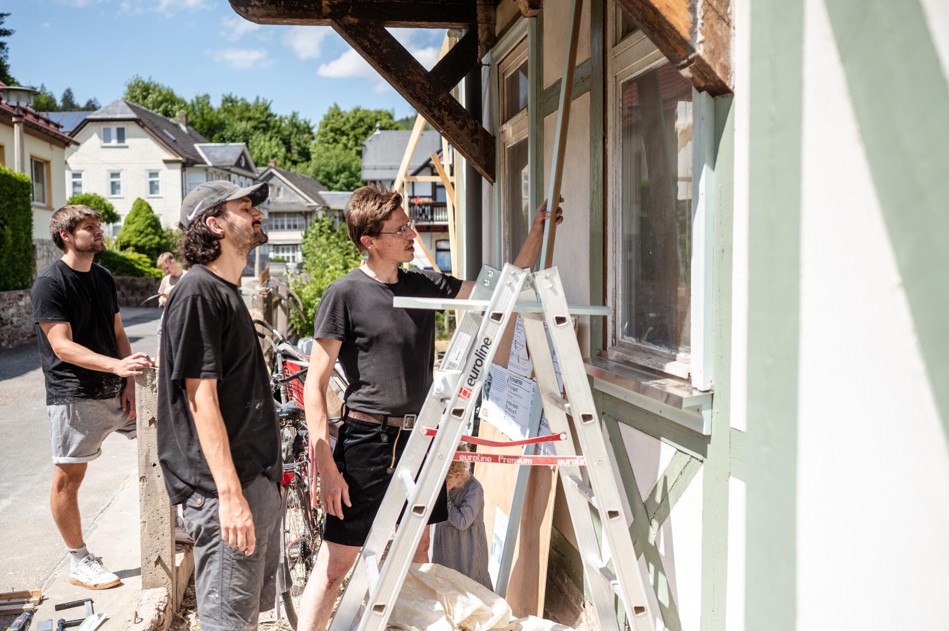 Future-oriented topics such as sustainable and circular building can be practically experienced on site in a hands-on way. This opens up new perspectives for vacant buildings, the preservation of historic substance and the passing on of special craftsmanship and fostering regional identification. Ensured by the initiative's links with the Bauhaus-Universität Weimar, individual education formats are set up in a discourse- and innovation-oriented way.