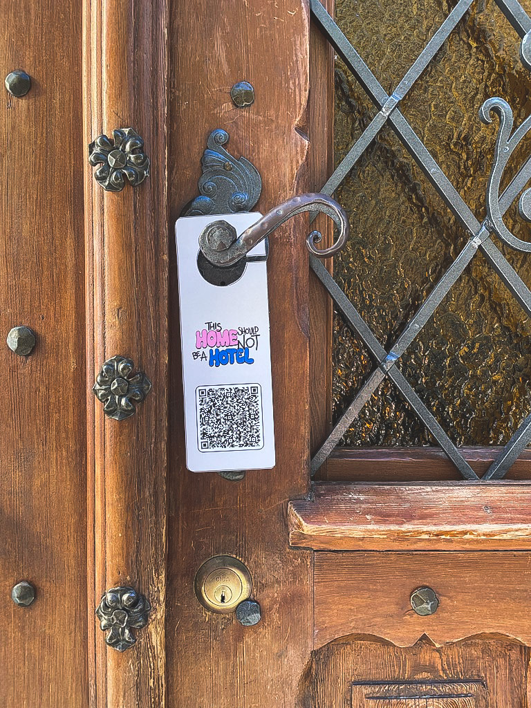 The concept is innovative because it wants to inform people in an engaging and not boring way, about a serious issue. In most cases, people tend to avoid or "run away" from activists who try to raise awareness of a topic, because they feel uncomfortable or do not have the time to dedicate to them. The proposed initiative is based on curiosity. People are intrigued by the doorknob hanger placed on the door, an emblematic object. Furthermore, the proposed message does not want to criticize Airbnb users for their choices, but to raise doubts and reflections through the data presented (quantitative and qualitative). Another feature that differentiates the concept from others is being open-source. This feature allows the project to be accessible and reproducible in different places, and also to connect them and their citizens.