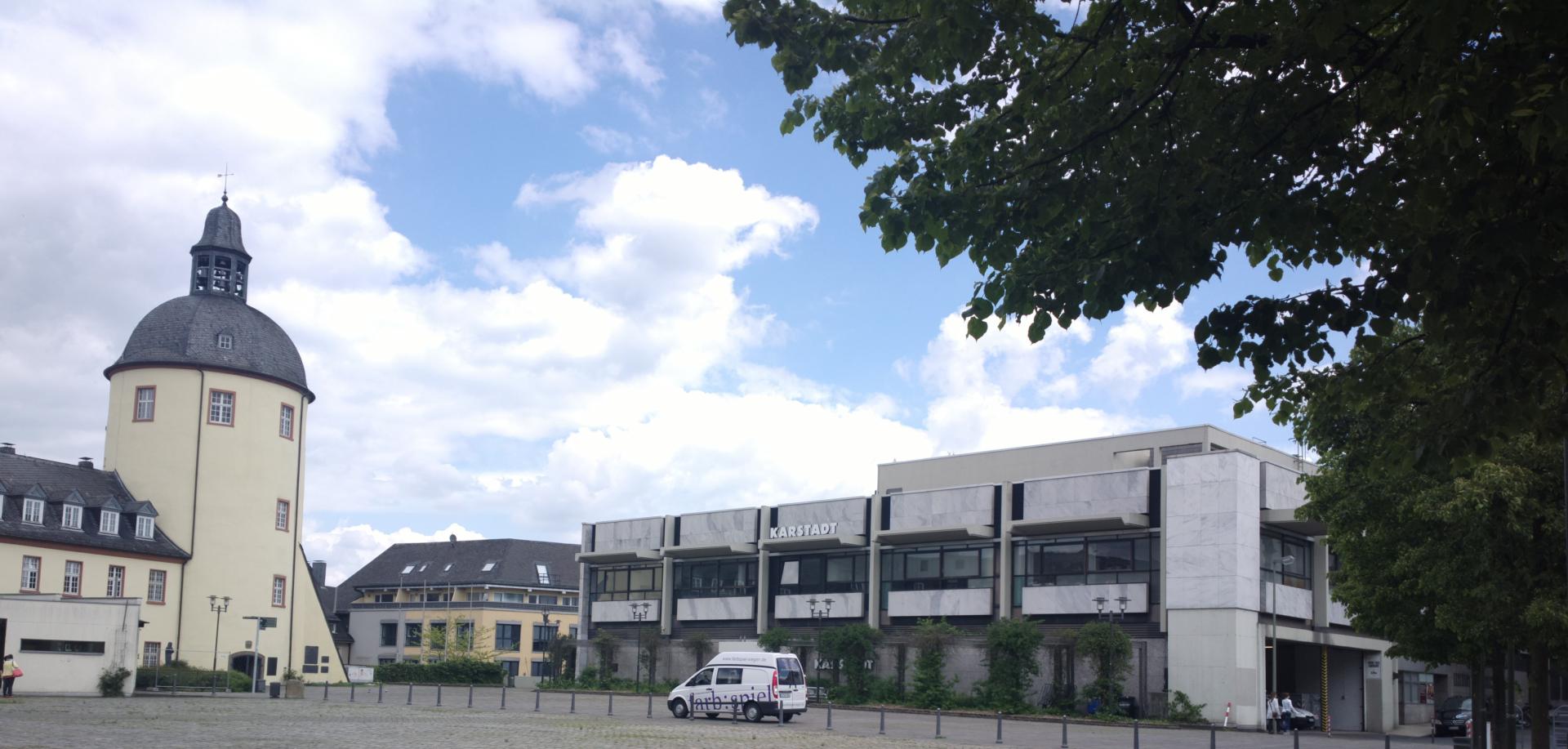 Downtown Siegen also went by this logic: the former department store Tietz is located at the upper end of the upper town’s principal shopping mile, Kölner Str., while Karstadt is located at the lower end, all surrounded by retail stores. Siegen’s role as a regional metropolis guaranteed the inflow of custom-ers and the shopping mile between the department stores generated rents common to locations like Düsseldorf. The aura further diminished with the opening of a shopping mall in the lower town in 1998.