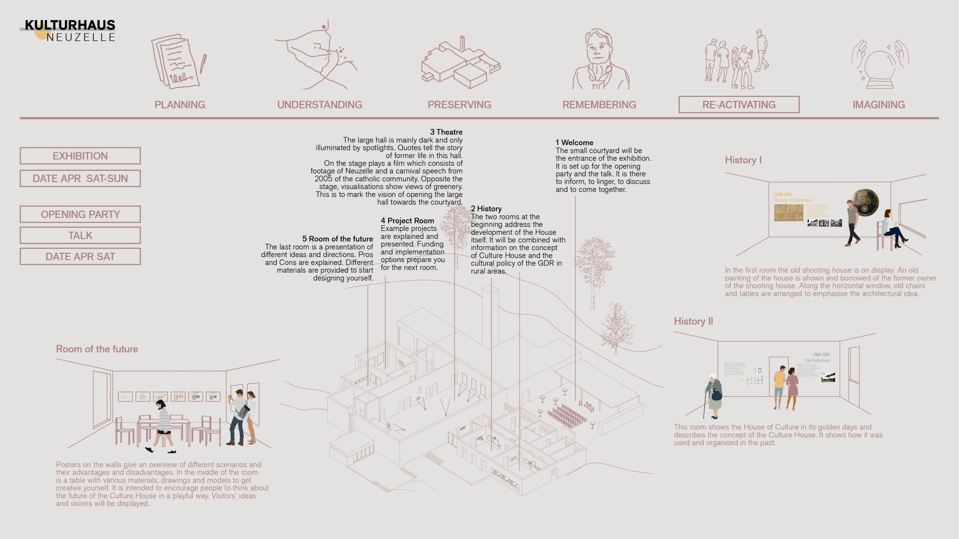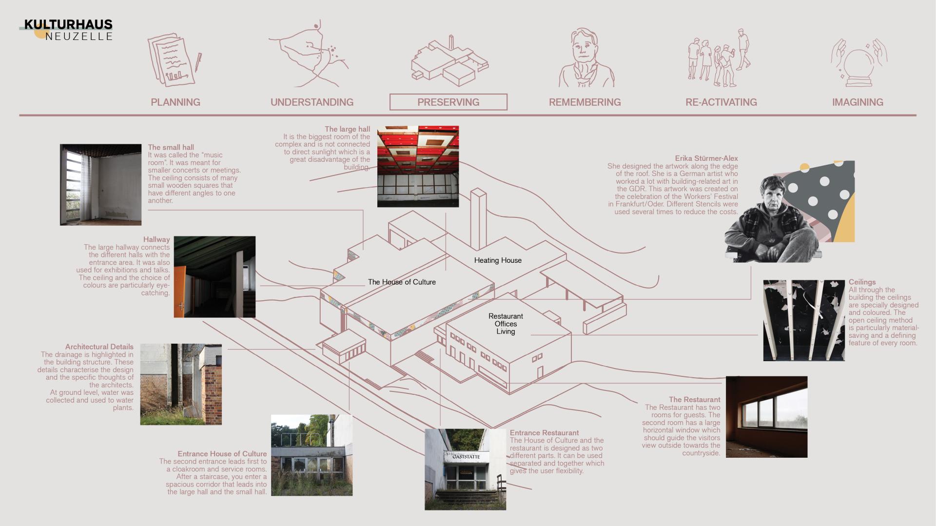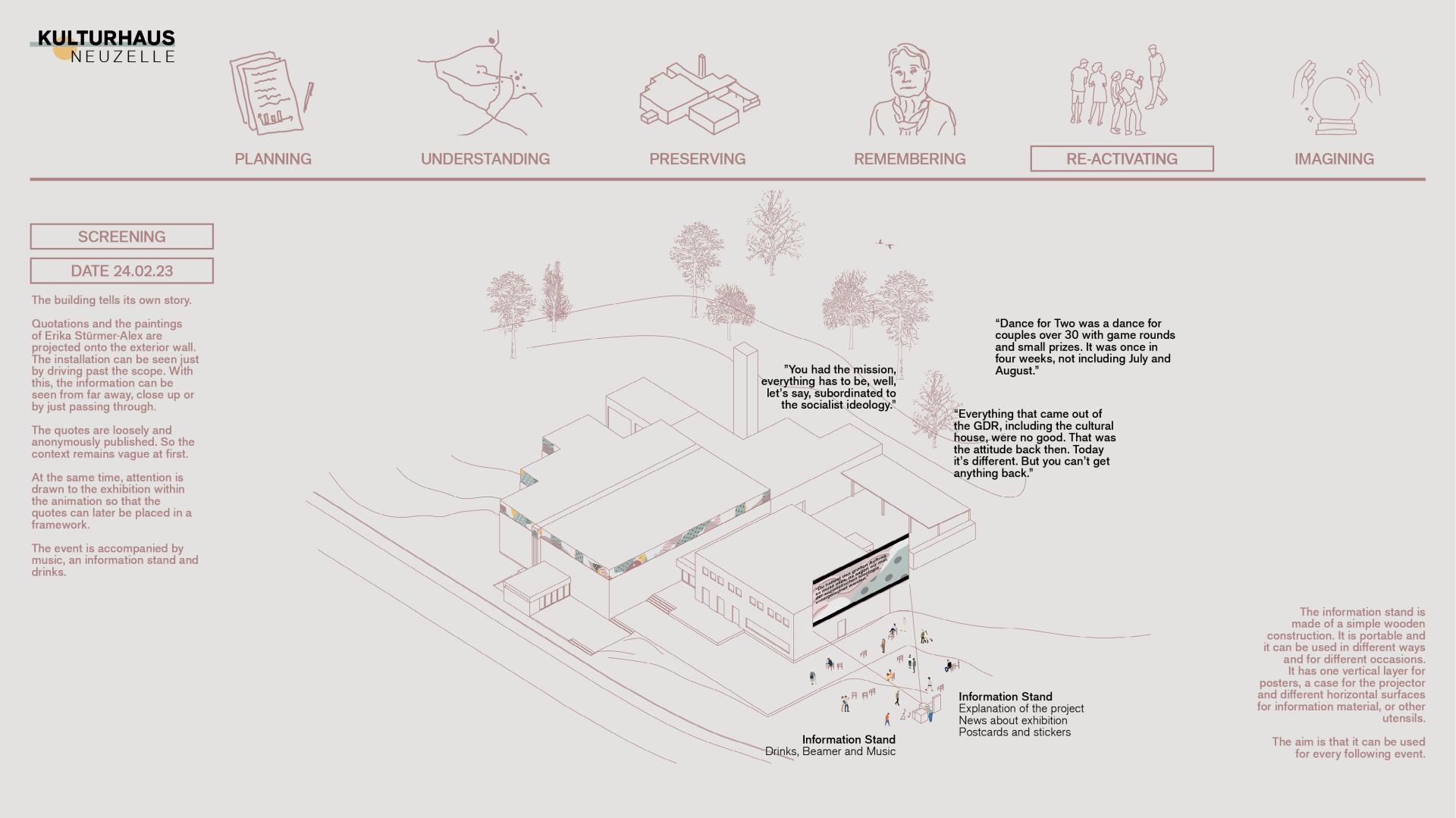 Furthermore dealing with the cultural identity of the East, modern architectural history is revisited through the work of architect Martin Maleschka and examined from different angles. The example of the Cultural House in Neuzelle is used to examine the characteristics that defined cultural buildings in the GDR and how this concept can be adapted to the present day.