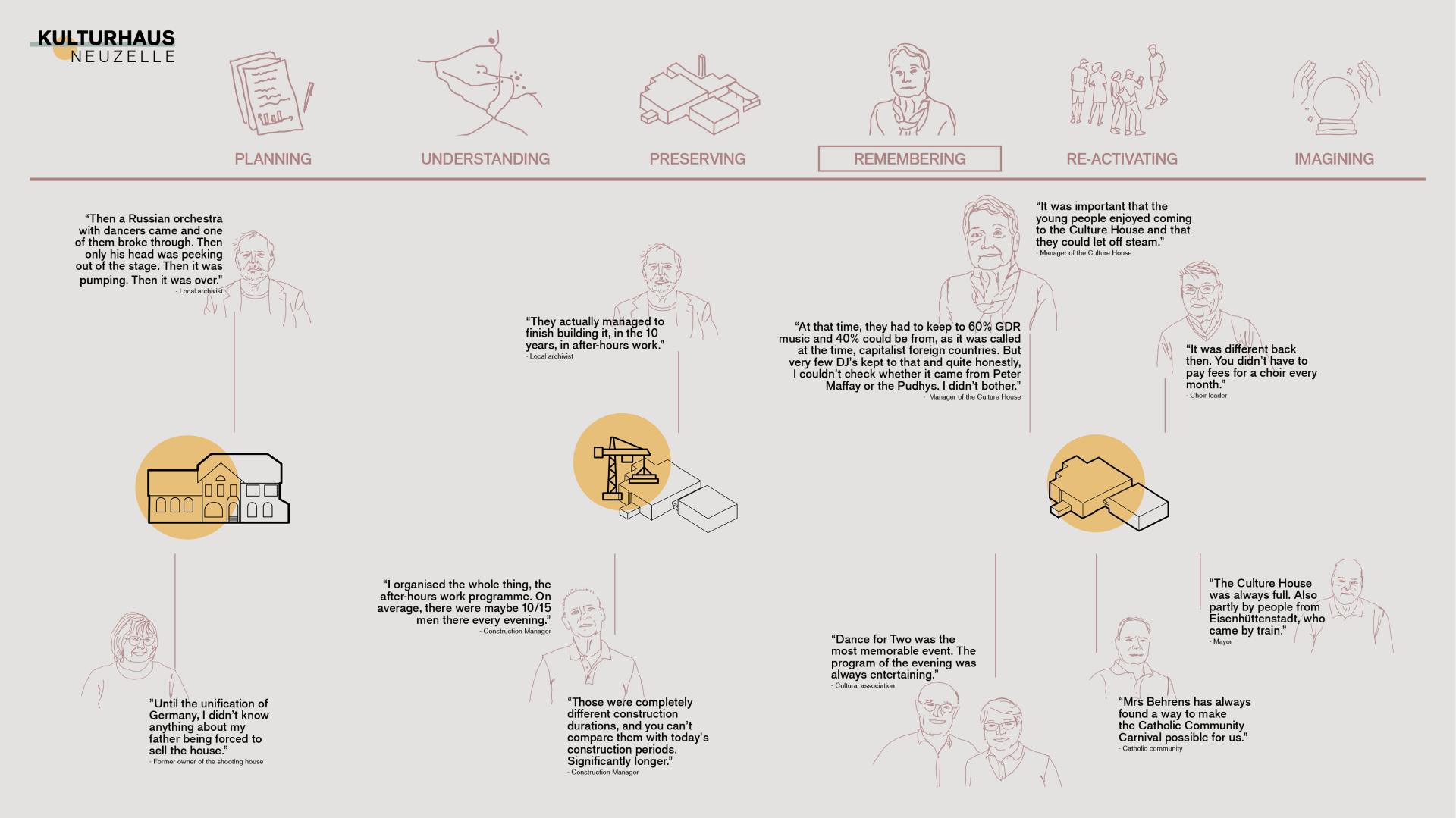Culture houses in the GDR were places for public life. They usually contained a large hall, a small hall, club rooms, a restaurant and smaller apartments. They used to be initiated, financed and managed by the state. Often used for “cultural and political education”, they were part of the GDR's “social conflict and control strategy”. In the course of my research, I came to understand more and more about the central role the House of Culture had played for the sense of belonging in my hometown Neuzelle in Brandenburg, Germany. The goal was to address the broad masses with a diverse program of events. It was important that a large number of people in the village would make use of the cultural offerings, and so the program was geared to the wishes of the residents at the lowest possible cost, since much of it was financed by the government. With today's problems it becomes increasingly important to look at novel solutions and learning from historic uses that were once deemed "non-functioning”.