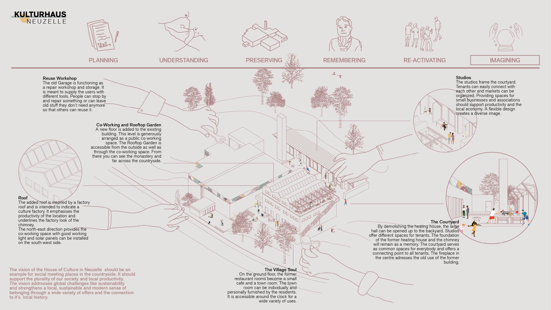 Briefly summarized it is the importance of social meeting places, the plurality of our society, the rural depopulation and overpopulation, as well as the handling of existing structures, which are global challenges discussed hereby. The House of Culture can turn into a place which addresses these challenges and strengthens a local, sustainable and modern sense of belonging.