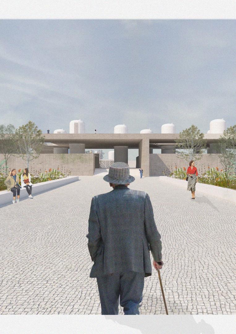 Lisbon is characterised by the river Tagus, watercourses and its topography. The project, consists of the design of an urban park and a water treatment center opening the harbour to the public, celebrating urban water resources and bringing attention to important issues of urban living and sustainability. How can water, act as a future tool for climate change, a binder and public space for Lisbon? The aim is to reformulate the relationship with water in a territorial as well as human scale.