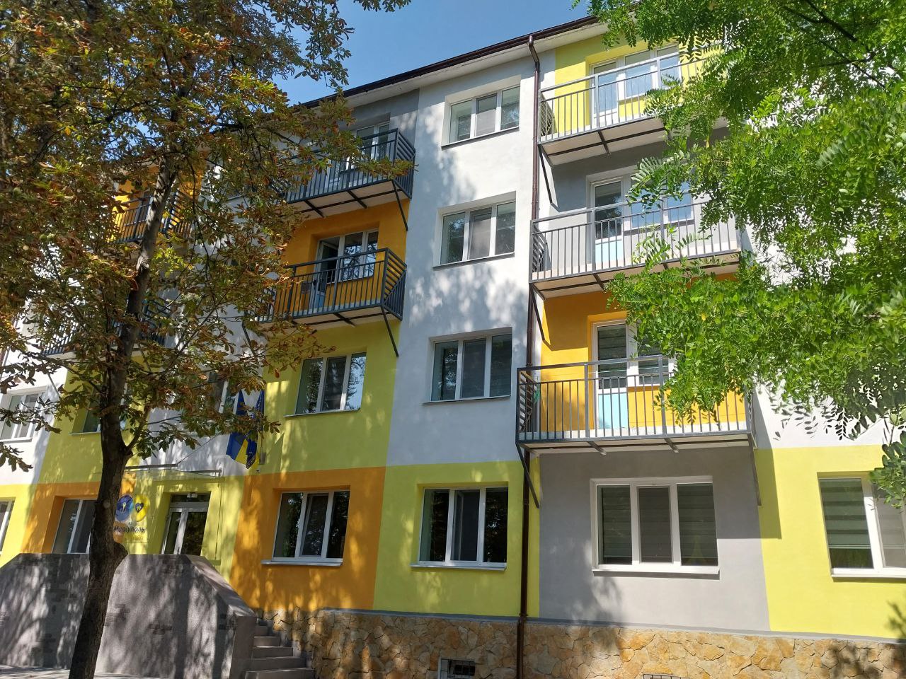Currently, a four-story dormitory in the city of Dnipro with a total living area of 1093.4 m2 serves as an example of a completed pilot project of social housing. The building contains 35 apartments, including 2-room apartments - 17 units, 1-room apartments - 18 units. According to the building regulations, the occupancy density was 8 m2 per 1 person. The scope of work consisted of the ongoing repair of the building, the implementation of communications, the arrangement of rooms and shelters, the improvement of the territory, the creation of a children's play area. The outer area of the hostel is equipped with a mini park for recreation, which includes 12 benches, a lawn of 500 m2 with an automatic irrigation system. 10 new trees were planted and 30 trees that were already small were cultivated. Next to the square, there is a children's playground with an area of 40 m2 for children up to 12 years old. The project can be considered exemplary for other communities of Ukraine that accept refugees from temporarily occupied territories, as it solves a whole set of issues faced by forced migrants. This is the presence of housing, its comfort, safety, provision of everything necessary for children, elderly people, people whose health needs additional attention.