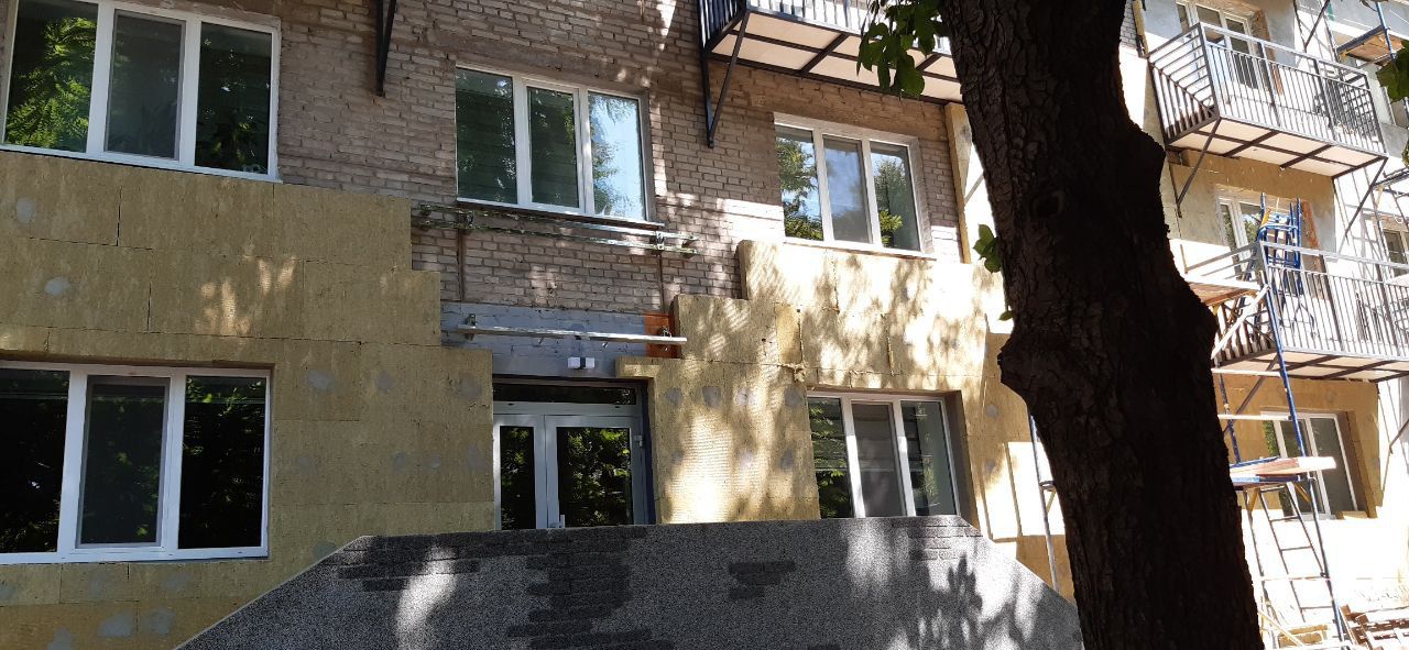 - Exterior insulation of the facade with 100 mm thick mineral insulation. The total area of insulation was 900 m2.