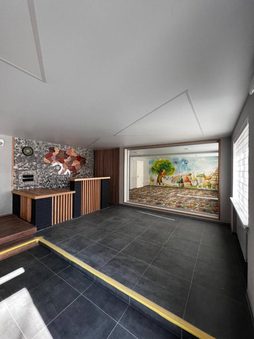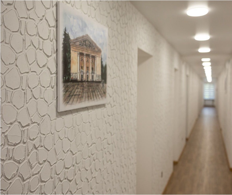 The social housing in which the evacuated residents of Mariupol settled must meet the requirements for comfort and coziness for both adults and children. Residents who settled in this hostel should feel cared for people and pay attention to comfort. This was achieved through careful selection of design proposals, materials and contractors. The project also provided residents with a children's playground outside and a storage room inside (estimated capacity - up to 200 people), because currently all cities of Ukraine suffer from Russian shelling. The storage room is located in the basement and has ventilation, an electric generator, sleeping places, a shower and a toilet.