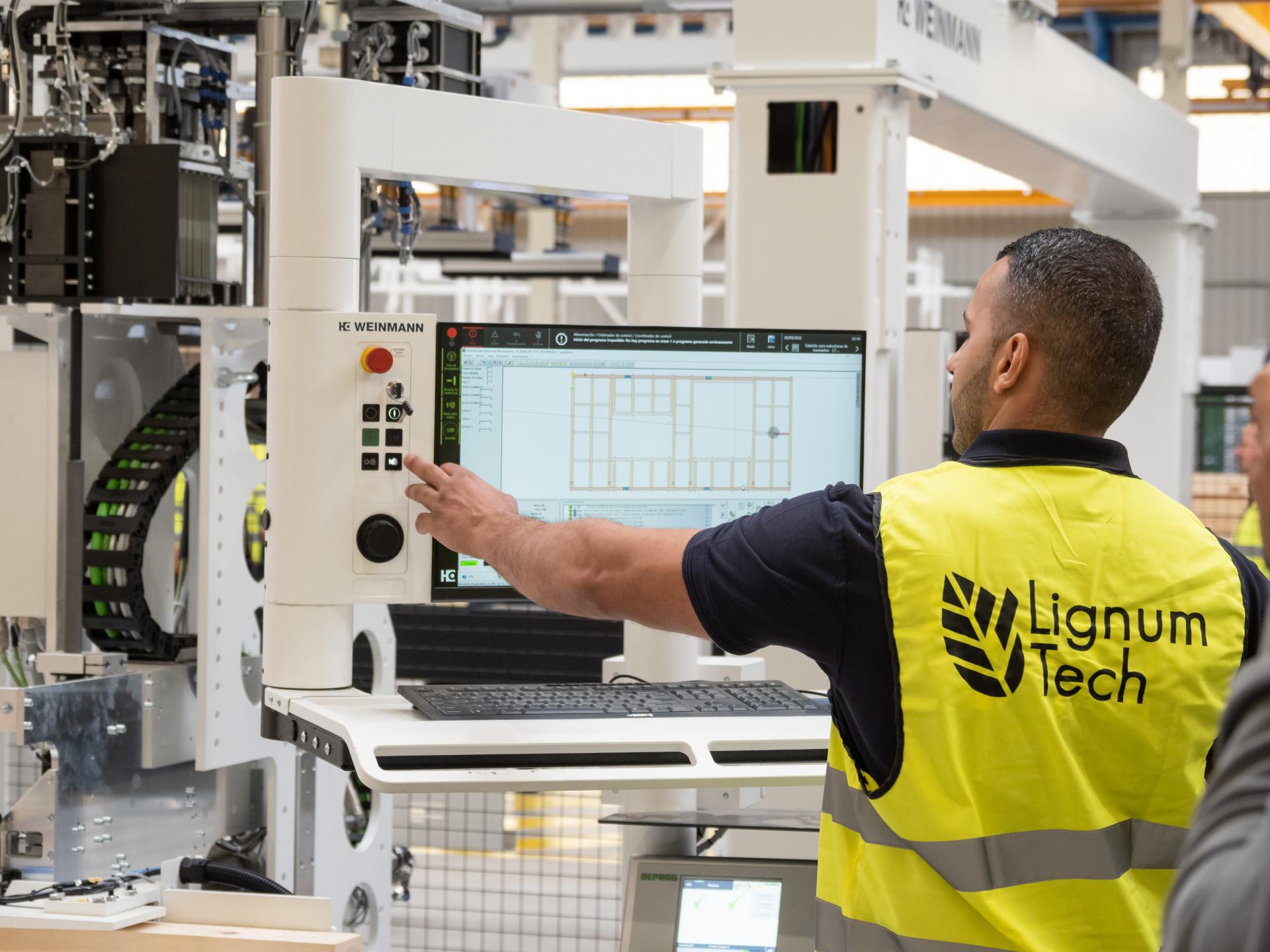 Development of an automated industrial process and layout for manufacturing a circular timber based