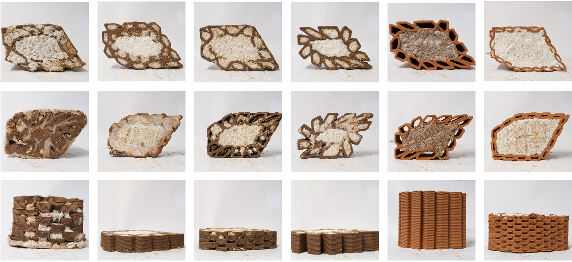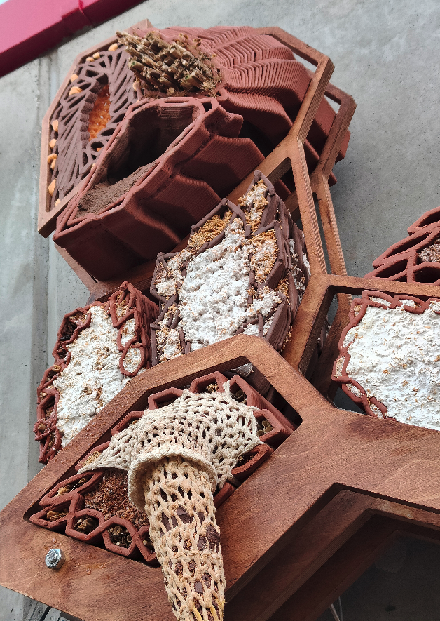 - Material Bio-circularity: We used biodegradable materials such as clay, mycelium composites,