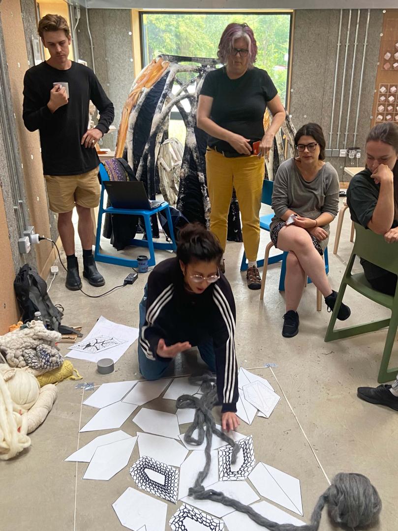 -By combining freeform crocheting, 3d printing of clay and mycelium, monitoring via sensors and a microbiome study, parametric design and meditation, perception exercises, fermentation, active imagination, and embodied ideation