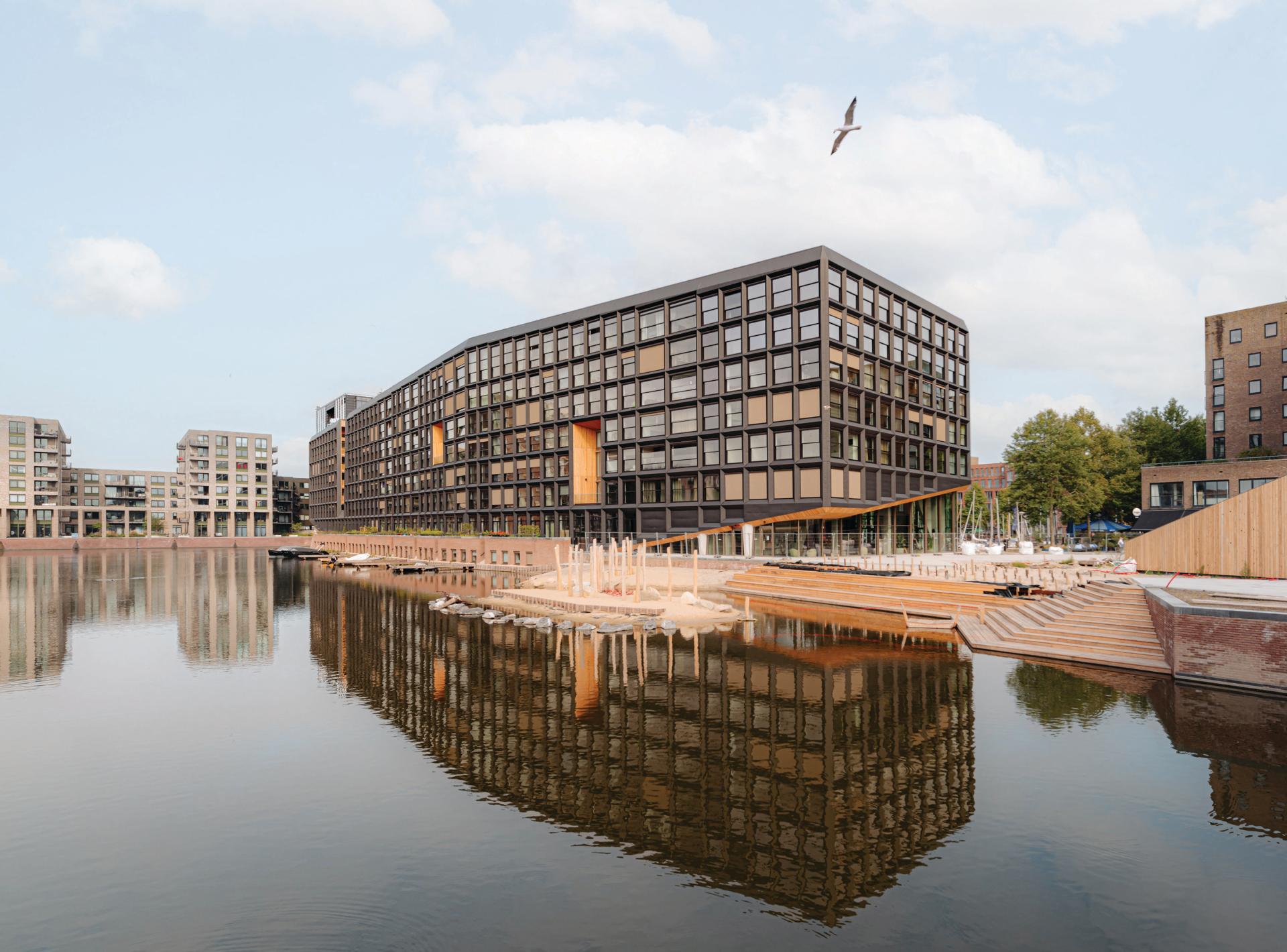 The name Jonas refers to the story of ‘Jonas and the Whale’. It stands for adventure, but also for protection and comfort inside a ‘big body’. It is a heroic building with a warm heart. But Jonas is also a highly sustainable and attractive building that stands out from the surrounding buildings in IJburg – if only because of the special site on the headland and the special program it accommodates. The building expresses in a striking manner themes that belong to this location: water, quayside and the craft of shipbuilding. As a result, Jonas feels natural, because the building embraces the ‘soul of the place’ and renders it visible.