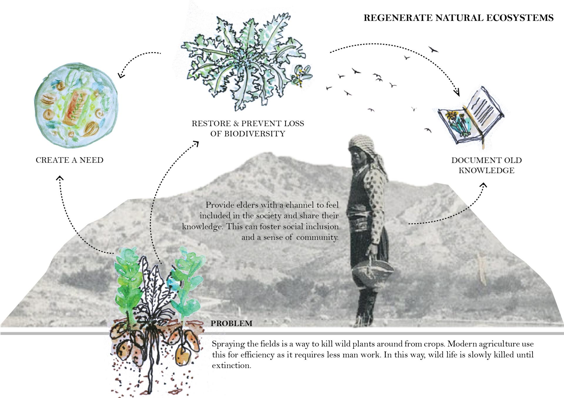 Secondly, we will be actively working to promote biodiversity by conducting research on traditional and forgotten ingredients, and working with local farmers to revive discontinued agricultural productions. We will also document the use of wild, edible plants to regenerate natural ecosystems and prevent loss of biodiversity. Documenting this old knowledge of eating wild edibles is important, as it tends to disappear with the generational gap and the disconnection from the land.