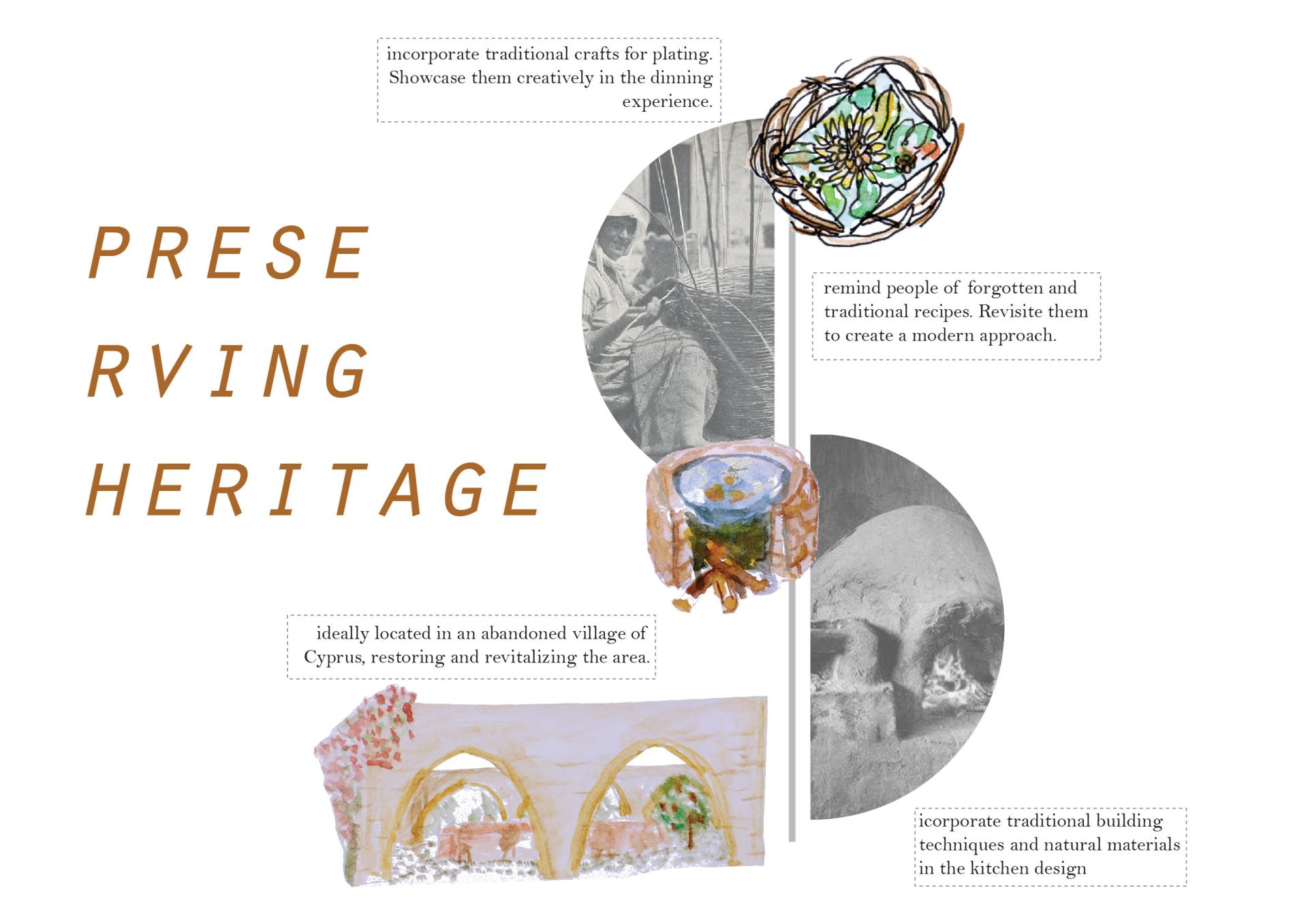 Moreover, our collaboration with crafts people, using traditional arts and crafts with natural materials such as basket weaving, will also demonstrate the importance of preserving traditional customs and ways of life. Also, our kitchen will be placed in an abandoned village in Cyprus with the goal of restoring and combining old and new to revive the area.
