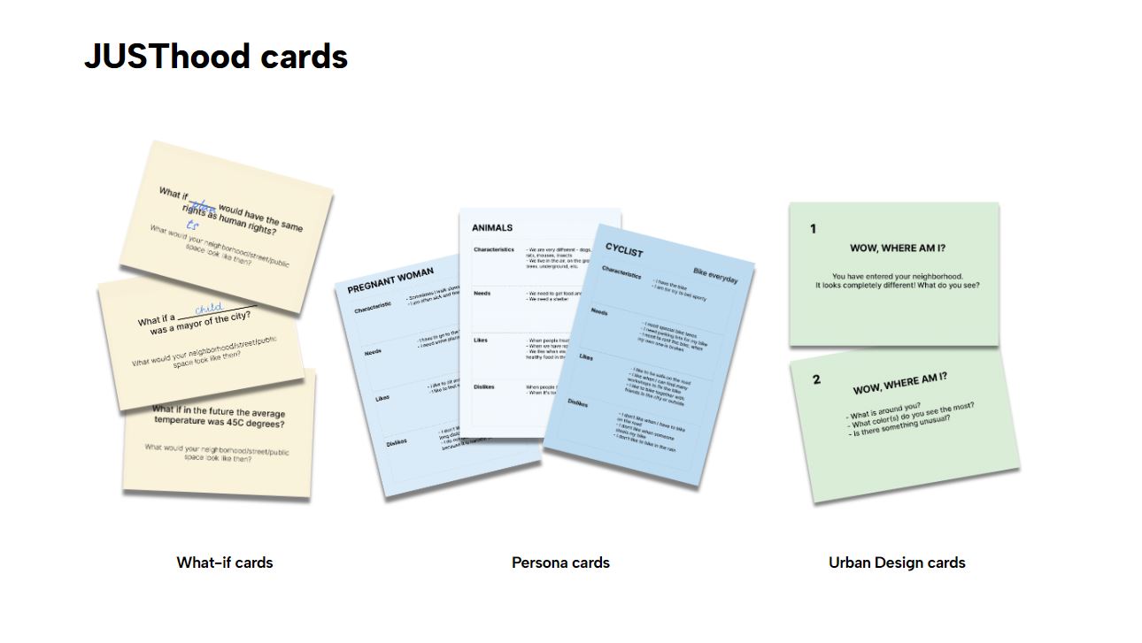 3 versions of JUSThood cards have been developed and tested for neighborhood, university campus and school yard.