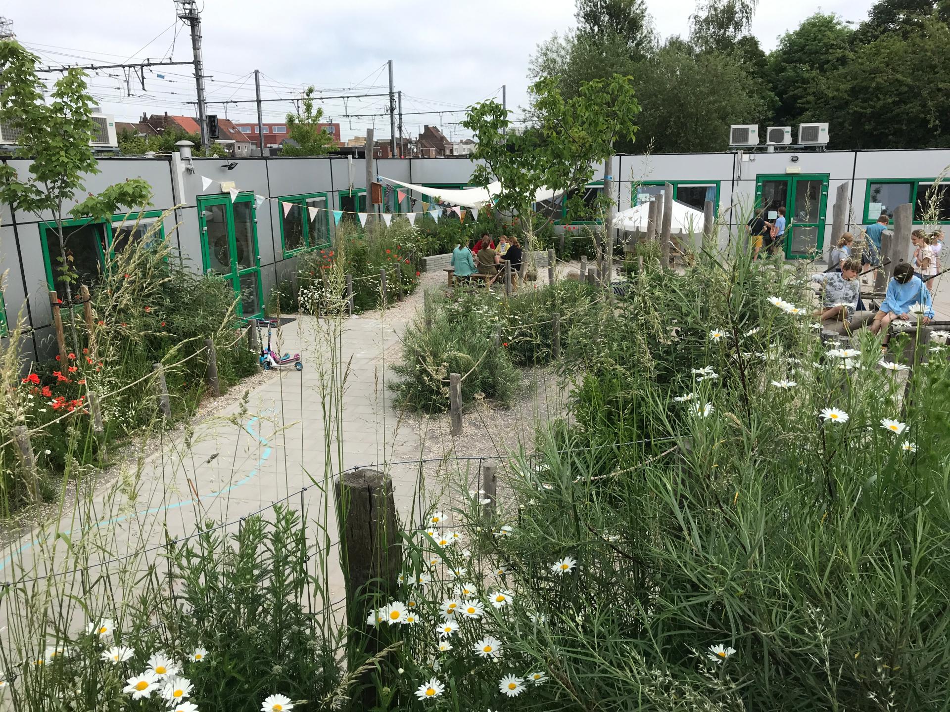 The project started in 2016 with an intensive participatory process that quickly involved pupils, teachers, school leaders, the neighbourhood and authorities. The title 'a dream of a playground' became the slogan to unite the many parties. The blog site climate playground was created to communicate progress and through social media, people were warmed up to participate in the changes. To give the project sufficient substance, teachers travelled home and abroad to visit schools and initiatives. They came back inspired and enthusiastic about the opportunities offered by creating a natural playground for the school. In addition, the team of teachers got to work on sustainable development projects that were sent by the University of Antwerp and Ghent, among others. However, the many inputs we received from parents and pupils made it difficult to create a solid design. At that point it was decided to work with landscape designers who could capture the dreams in images and designs. The intensive design process took four years. Thorough thought was given to how the school's outdoor space could be made climate-adaptive and at the same time play- and learning-friendly. Many information sessions and design meetings followed. A team set to work intensively to find the necessary resources and, as authorities and partners jumped on board the project, the snowball became unstoppable. Construction of the playground started in 2019 and was completed in March 2020. Now we are training the staff to work with the grounds. A collaboration with Artevelde University of applied scienses delivers co-created lessons where teachers and students are collaborating in creating outdoor lessons on the spot. This is a rich cooperation that is helping teachers in gaining self confidence in their outdoor lessons.
