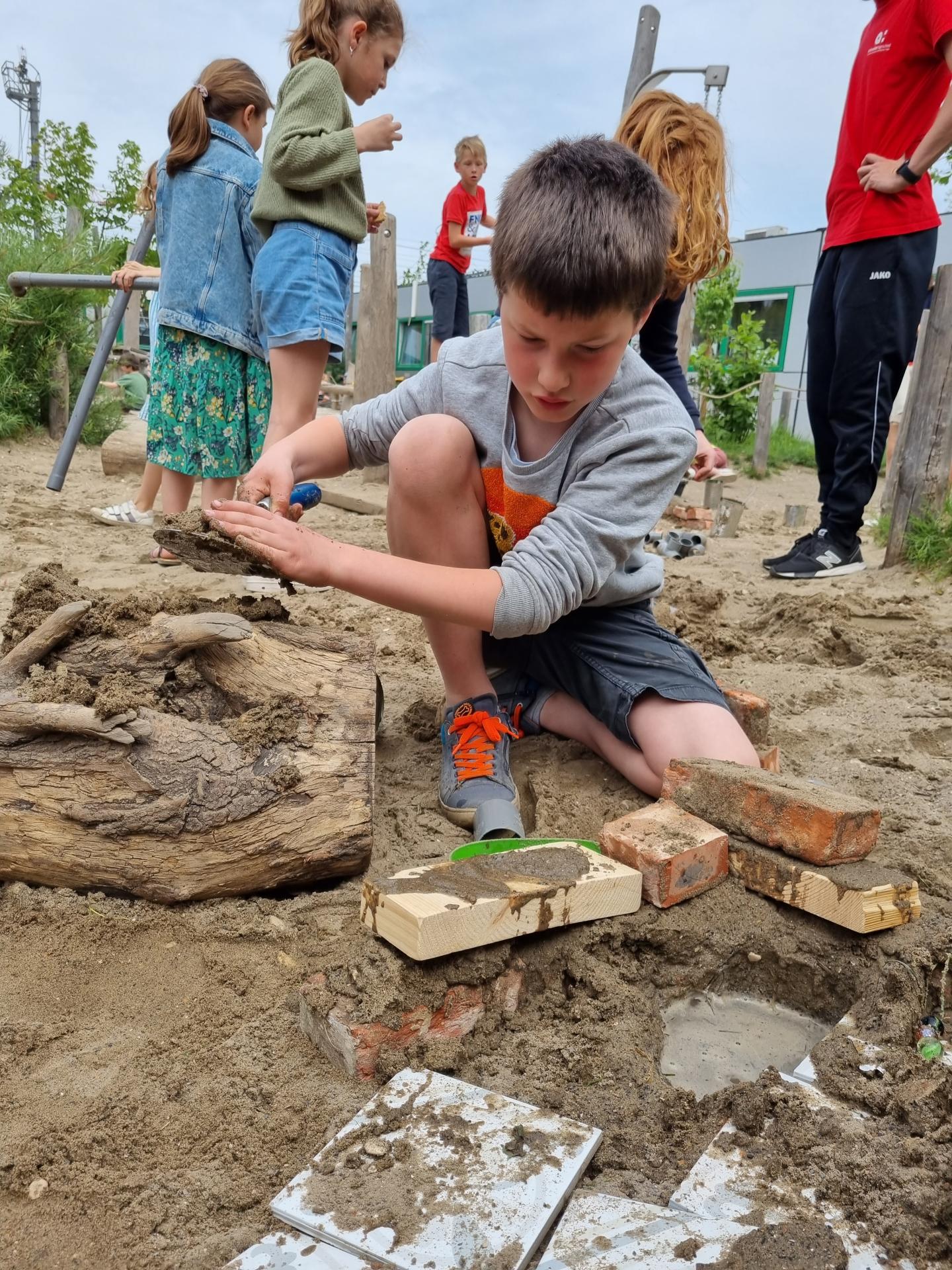 The playground is now a brilliant practical example of how, as a school, you can put the children's interests first and reconnect them with their natural environment. More and more research shows that, as adults, we have a responsibility to restore this connection. If we want our future generations to care for nature, we will have to connect them to it from an early age. There are no better places to do this than the playgrounds of our schools where they learn and play every day. If these places are smartly designed, with space for play, learning, exploration and nature then you immediately make a difference. Our design chose monkey-proof materials such as robinia wood and other robust materials. More than 40 trees and over 150 shrubs were planted in a varied landscape where natural materials such as sand and gravel play an important role. Sports fields were also laid out throughout the nature-rich areas so that both large and fine motor skills are stimulated. Clear walking lines, well thought-out layout and bold choices regarding planting, adventurous and risky play now provide a fantastic playground for children. As teachers, we notice that bullying has all but disappeared from our playground. Our children are less bored. We see a wonderful variety of play forms and we have countless opportunities for outdoor learning. Our children learn to care for animals and plants and learn about healthy eating and recycling. For example, there is a vegetable garden with greenhouse, we keep chickens and bees and we have our own recycling park. We track the growth of our trees through qr codes where each tree has its own online passport and life in our nest boxes is tracked through wildlife cameras. The school also has its own weather station allowing pupils to publish their own local weather report. This variety of learning opportunities are seldom seen and make this project unique and exemplary.
